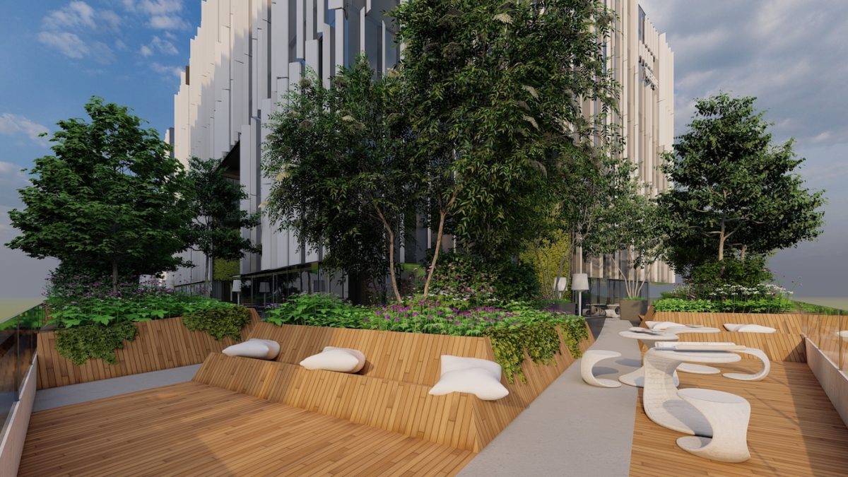 Научно доказано, что релаксирующие террасы и зеленые насаждения, современные вентиляционные системы, интеллектуальное освещение, продуманное обустройство помещений, различные дополнительные услуги класса А улучшают благополучие работников и повышают производительность труда. “Особым отличительным знаком офисного комплекса “VERDE» также будет непревзойденное озеленение и на просторных, засаженных деревьями и другими растениями террасах площадью 600 м2 в каждом здании, и в двориках с пышной зеленью и наружными рабочими местами”, – поясняет Лаце.