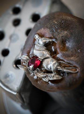 Гранаты в каждой из этих ювелирных версий символизируют рубины: ариллусы фрукта в положении «9 часов» выполнены из рубинов «снежной» закрепки паве, а зернышко, которое держит в лапах Крыса, украшено рубином более крупного размера. Сочетание драгоценных материалов (бриллиантов, золота, рубинов) подчеркивает черты Крысы – страстного, амбициозного и находчивого животного, символа смекалки и процветания. Каждая из этих двух моделей выпущена ограниченной серией из всего лишь 8 экземпляров, в духе наиболее уникальных творений Jaquet Droz.