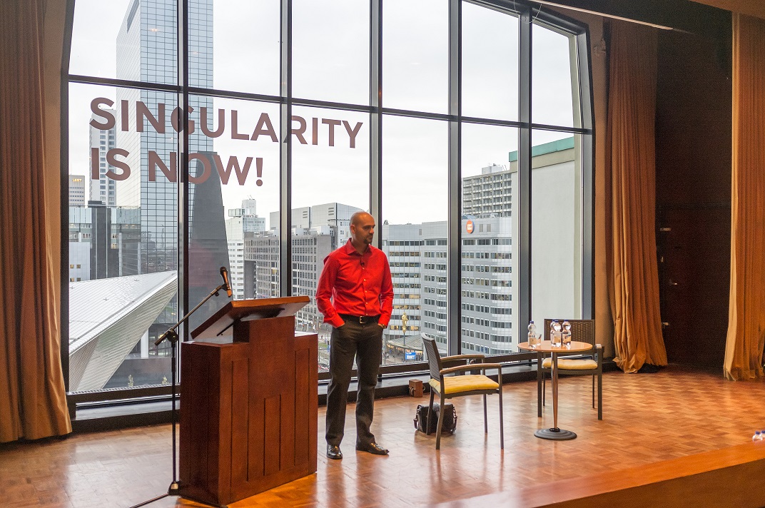 “Я хотел писать свою магистерскую диссертацию о чем-то новом. Это был 2005–2006 год, и к тому моменту уже был написан миллион работ по Первой и Второй мировым войнам. Меня заинтересовала тема первых дронов, которые использовались во время военных конфликтов в Йемене, Ираке и Афганистане. Это навело на мысли об искусственном интеллекте и его применении в военных целях. Тогда же я стал интересоваться технологической сингулярностью и темой трансгуманизма, — рассказывает он. — После окончания вуза я долго не мог найти работу — это был пик мирового финансового кризиса. 300 разосланных резюме не принесли никаких результатов, и я просто начал вести свой блог и подкаст о сингулярности, а со временем и выступать как оратор на различных конференциях. Так что в каком-то смысле я стал футурологом благодаря тому, что не мог найти работу”.