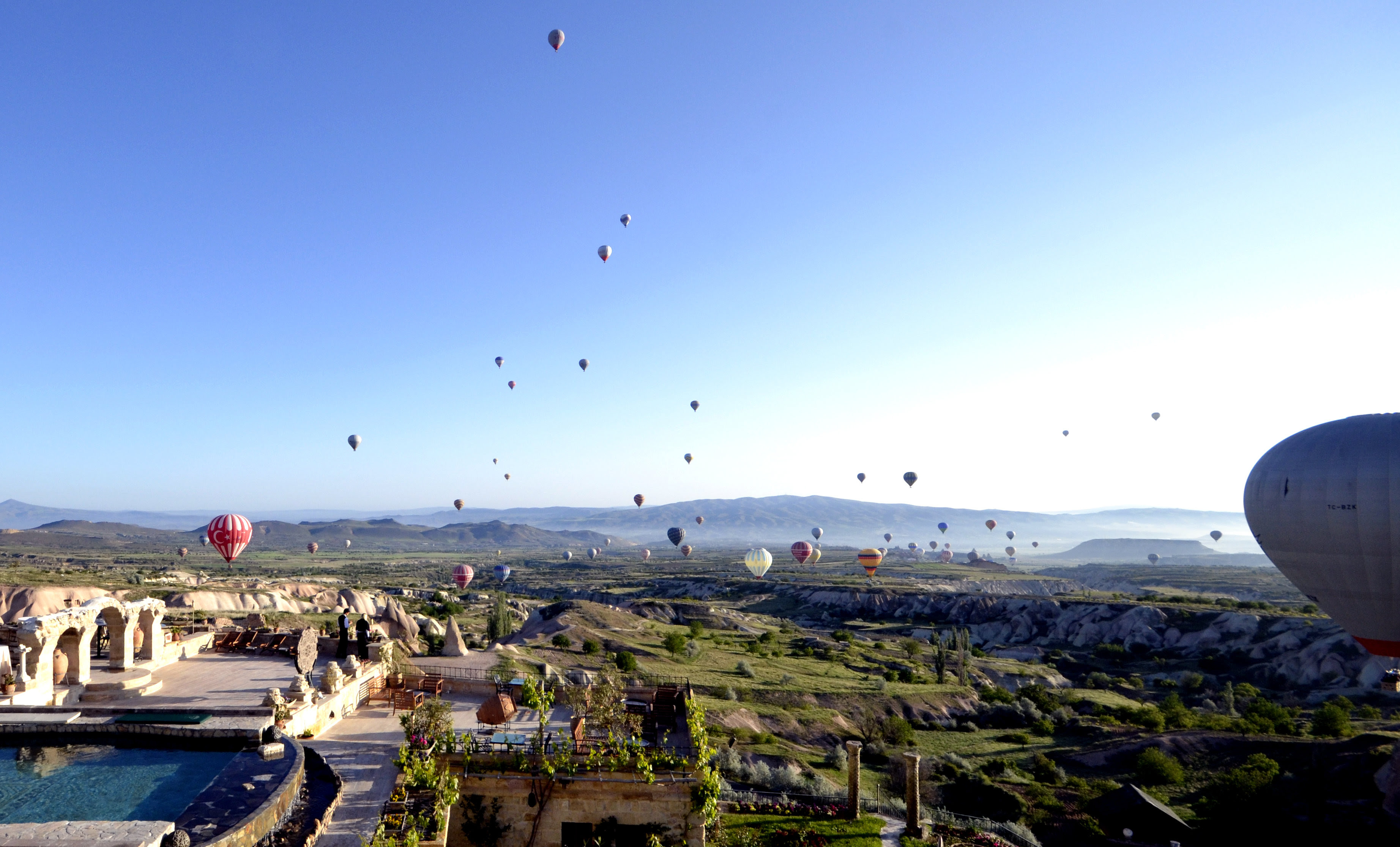За пределы гостиницы можно не выходить. Вся история — горы, каньоны, замки — здесь. Прямо из номера можно рассматривать Аванос с фаллическими скалами-столбами высотой 30 метров (из-за них живописную территорию прозвали Долиной любви). С террасы — припудренный снегом вулкан Эрджияс. А из открытого бассейна — охраняемый ЮНЕСКО парк Гереме. Туда, впрочем, все же стоит заглянуть — ради пещерных церквей с дивной акустикой и сотен келий, расписанных ликами святых и великих каппадокийцев.