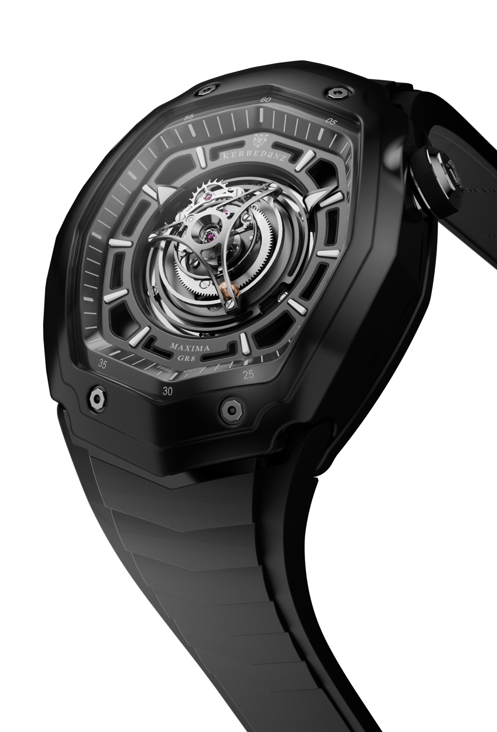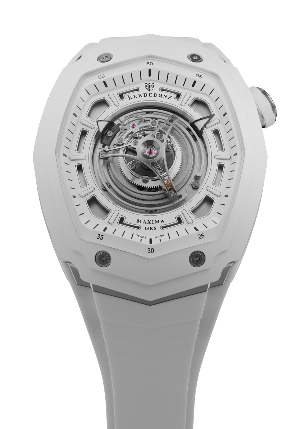 Швейцарский дом Kerbedanz представил две новые модели из коллекции Maxima GR8 — Black Ceramic Edition и White Ceramic Edition. Новинки продолжают линию, ранее выполненную в монокристаллическом сапфире, но теперь делают ставку на иной визуальный и смысловой язык: черную и белую керамику, прочитанную через образ Инь и Ян. В центре каждой модели — завораживающий центральный парящий турбийон с минутным циклом, который в этой композиции становится не только техническим, но и символическим ядром часов.