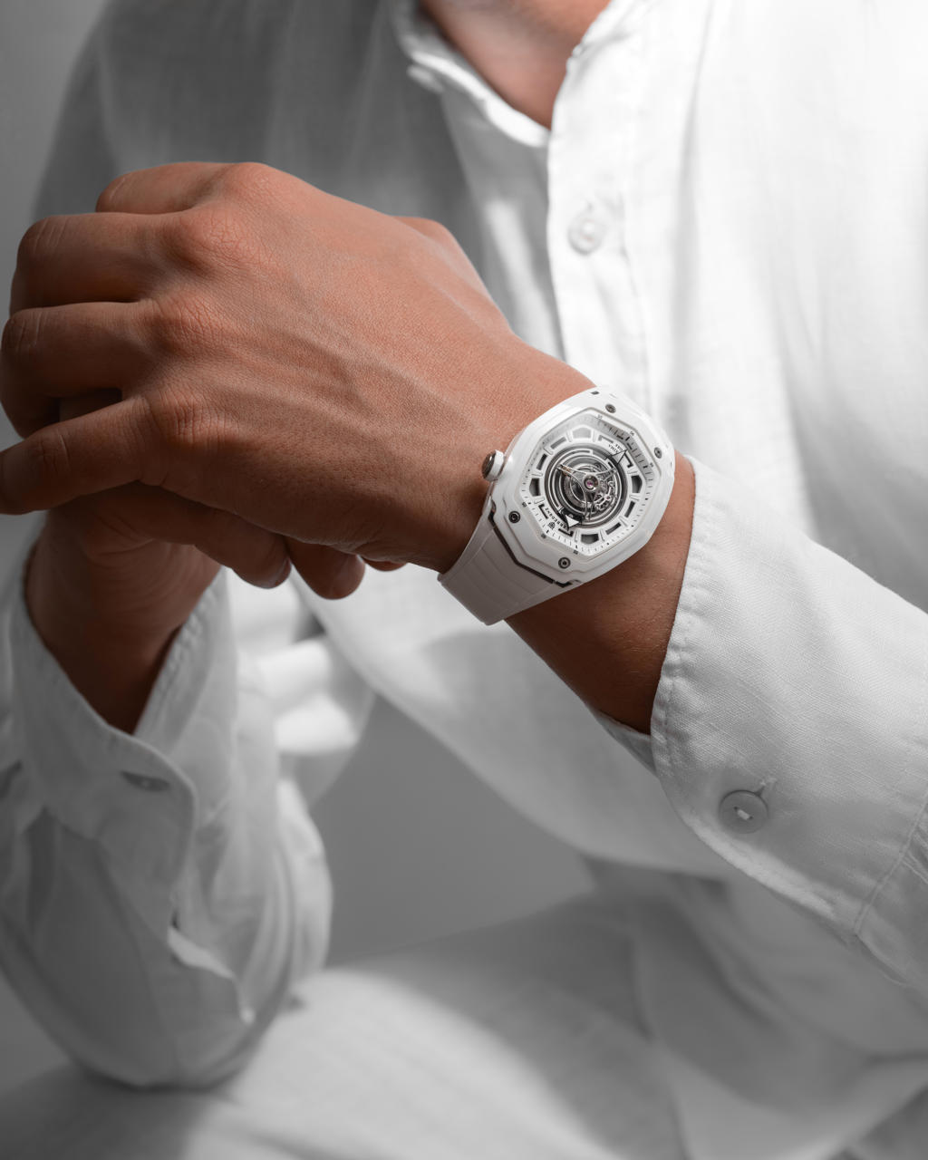 Обе модели получили корпус из высокотехнологичной керамики, которую марка выделяет за твердость, устойчивость к царапинам и легкость при ношении. Черная версия выглядит более резкой и современной, почти скрытной по характеру, тогда как белая делает ставку на чистую, выверенную и подчеркнуто современную элегантность. В обоих случаях отделка корпуса работает на архитектурную пластику Maxima GR8.