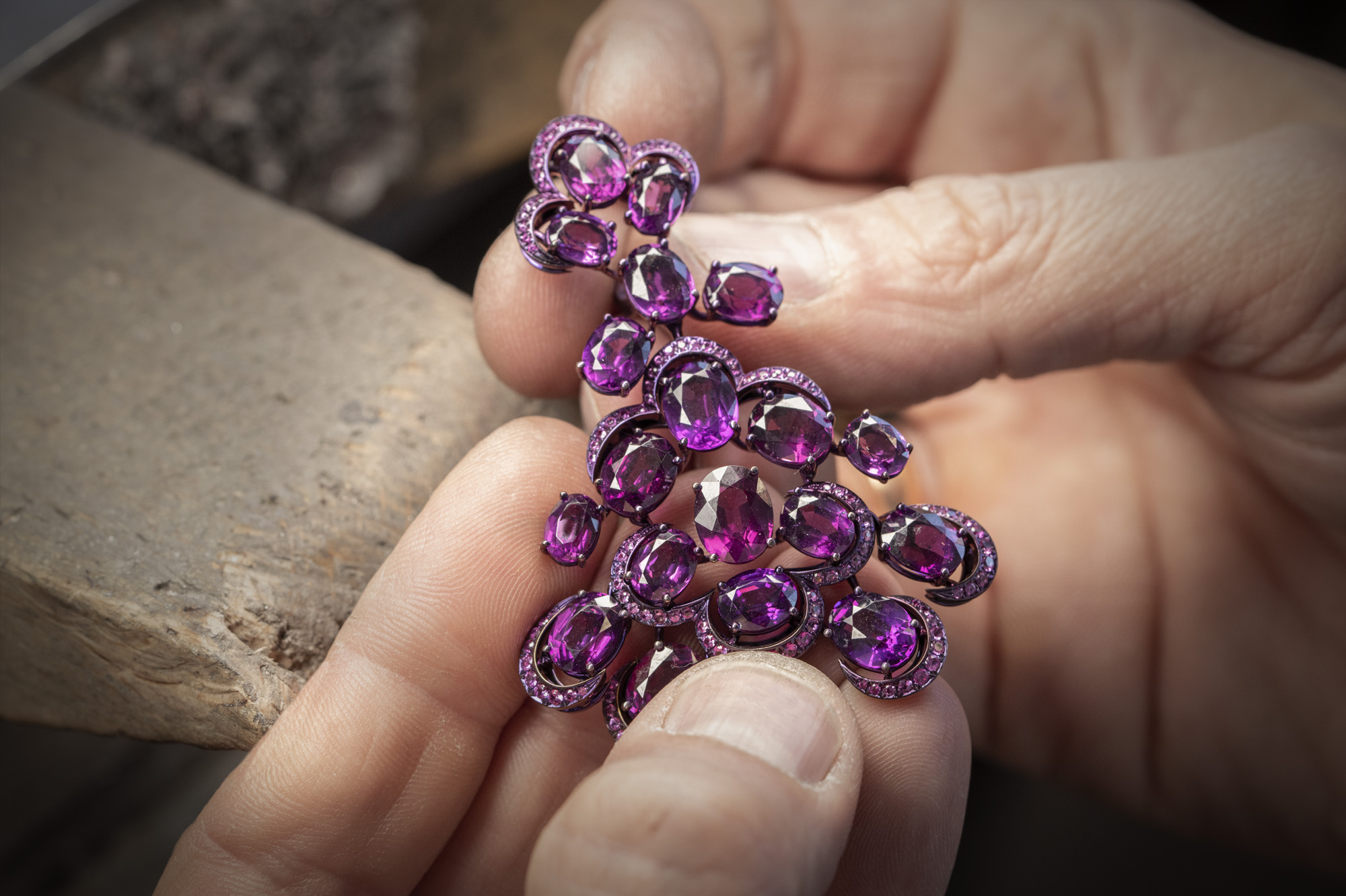 В каждом украшении таится эмоция. Вначале рождается первичный замысел, затем появляются эскиз, мозаика из драгоценных камней, разнообразие цветовых решений – и непреодолимое желание поделиться этим с миром. Полностью коллекция Red Carpet предстала на всеобщее обозрение во время Каннского кинофестиваля, но по случаю парижской Недели высокой моды, Каролина Шойфеле представила несколько моделей, дающих наилучшее представление обо всей коллекции. Это настоящая творческая вселенная, в которой ослепительно сверкают звезды ее бескрайнего воображения. Подобно режиссеру эта страстная поклонница киноискусства кладет в основу каждой коллекции целый повествовательный сюжет и создает масштабное полотно, герои которого воплощают ее отношение к миру.