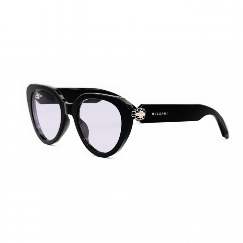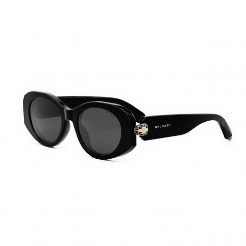 Названная именем культовых аксессуаров Serpenti Forever, объемная прямоугольная основа из дерзского ацетата демонстрирует драгоценную змею на функциональном шарнире и изящную подпись BULGARI на широких заушниках. Броские, но элегантные очки гламурны и магнетичны. Блестящая черная оправа, голова змеи из черной эмали, градиентные серые линзы с AR-обработкой.