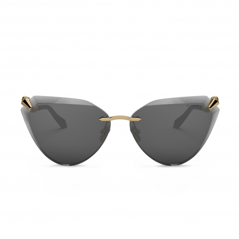 Форма кошачьего глаза без оправы чарует изыском выразительных металлических дужек, повторяющих форму драгоценной змеи с ее изгибами и великолепной чешуей, а также ацетатными кончиками. Прелестный непреходящий стиль отличает идеальный аксессуар BULGARI с гранеными линзами и блестящими полированными углами, напоминающими бриллианты.