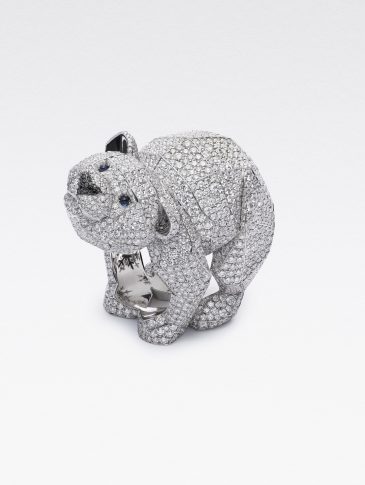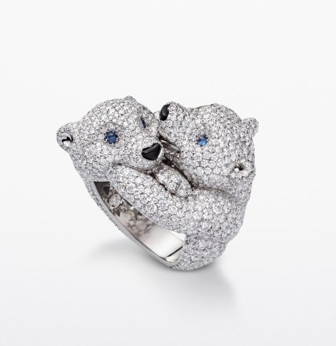 Каролина Шойфеле демонстрирует в эксклюзивном формате первые творения новой линии, созданные искусными мастерами Chopard: ювелирные часы Owl («Сова») с двумя циферблатами в обрамлении из разноцветных сапфиров, которые служат ночной птице глазами; серьги Orchids («Орхидеи») с лепестками из сапфиров и почками из цаворитов, которые выглядят совершенно как живые; серьги и кольцо Gingko («Гинкго») из изумрудов грушевидной огранки, цаворитов и желтых сапфиров, цвета которых напоминают листву этого величественного дерева; а также серию бриллиантовых колец Polar bear («Белый медведь») и Seal («Тюлень»).