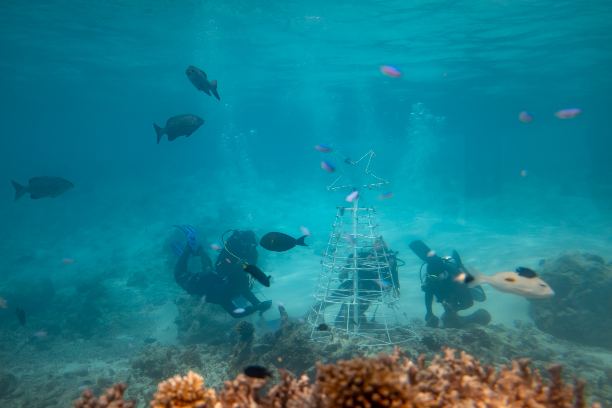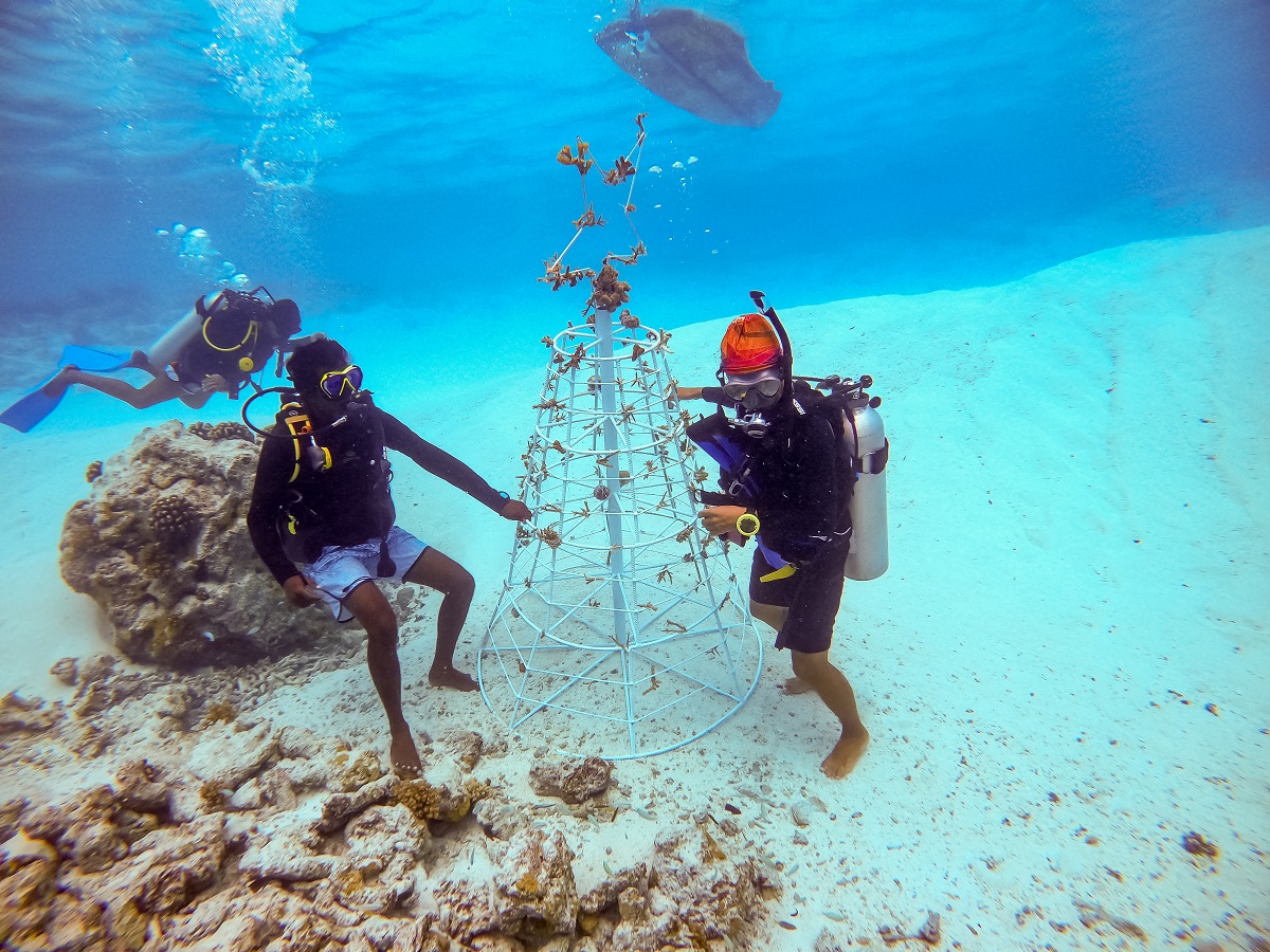 Команда Ошин Кристофер старается выбирать для посадки кораллов наиболее благоприятные места для их роста в лагуне. «В наших питомниках есть разные виды кораллов, в том числе рифообразующие кораллы, которые выдержали массовое обесцвечивание в 2016 году, прошедшее под воздействием слишком высокой температуры воды, — рассказала биолог. — Мы изучаем генетику их пигментации, чтобы выращивать более устойчивые кораллы. В ближайшем будущем мы добавим риф из бетонных блоков рядом с одним из пляжей, чтобы создать убежище для местных видов рыб – в определенный момент они должны будут принять эти блоки за часть рифа».