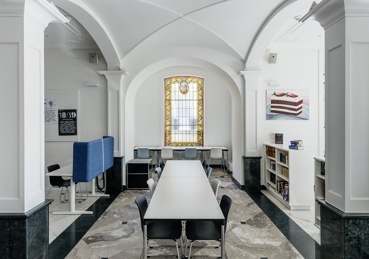Трехэтажный проект устроен так, чтобы разместить команду из двух человек, а студенты смогут использовать его в качестве исследовательского центра и участвовать в иммерсивных учебных модулях, которые активизируют творческое решение проблем. Первый уровень отведен для гигиены, лабораторных исследований и мастерских для использования роботов от других партнеров, таких как ABB для 3D или многофункциональных роботов; второй предназначен для работы, отдыха и развлечений; третий – для уединения и отдыха. Важное место в дизайне занимают психическое благополучие и экологичность, поэтому все пространство и мебель от компании Vitra мультифункциональны и позволяют заниматься разными видами деятельности в ограниченном пространстве.