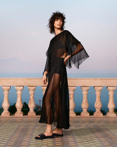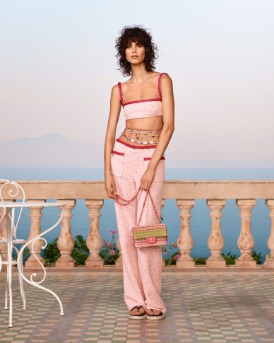 «Изначально я думала о Капри, где шоу должно было состояться, но из-за вируса так и не случилось», — говорит Виржини Виар. — «Мы должны были адаптироваться: мы не только решили использовать ткани, которые у нас уже было, но коллекция, в более общем смысле слова, развивалась в направлении путешествия по Средиземному морю… Острова, запах эвкалипта, розовые оттенки бугенвилии». И свободное, непринужденное очарование, вдохновленное легендарными актрисами 1960-х, когда они отдыхали на Итальянской и Французской Ривьере.
