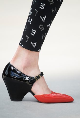 Вдохновленная путешествиями круизная коллекция CHANEL 2019/20 фокусируется на силуэте в движении, мощном и в то же время нежном. Комфорт, функциональность и элегантная простота составляют основу этого очарования, которое ничто не сдерживает. И чтобы дополнить образ аксессуарами, Вирджиния Виард представила коллекцию обуви, которая в буквальном смысле встряхнула великую классику CHANEL. Лакированная кожа, ремешки, конический каблук 7 или 9 см, острый носок, двухцветное решение, причем один из цветов всегда черный…