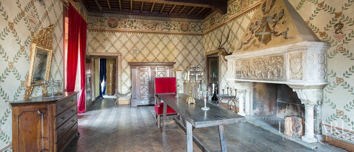 В самом сердце зеленого Пьемонте, на фоне завораживающего пейзажа, окруженный вековыми деревьями, продается великолепный замок, памятник архитектуры богатый историей и шармом. Этот замок, выставленный на продажу и представляющий собой образец элитной недвижимости, был построен на рубеже четырнадцатого и пятнадцатого веков и может гордиться своими владельцами, которые были выдающимися историческими персонажами. Замок построен из местной каменной породы, в его структуре до сих пор сохранилась старинная башня, украшенная зубчатым орнаментом из обожженного кирпича, а также две пристройки к фасаду замка, служившие для его военной защиты, и подъемный мост.
