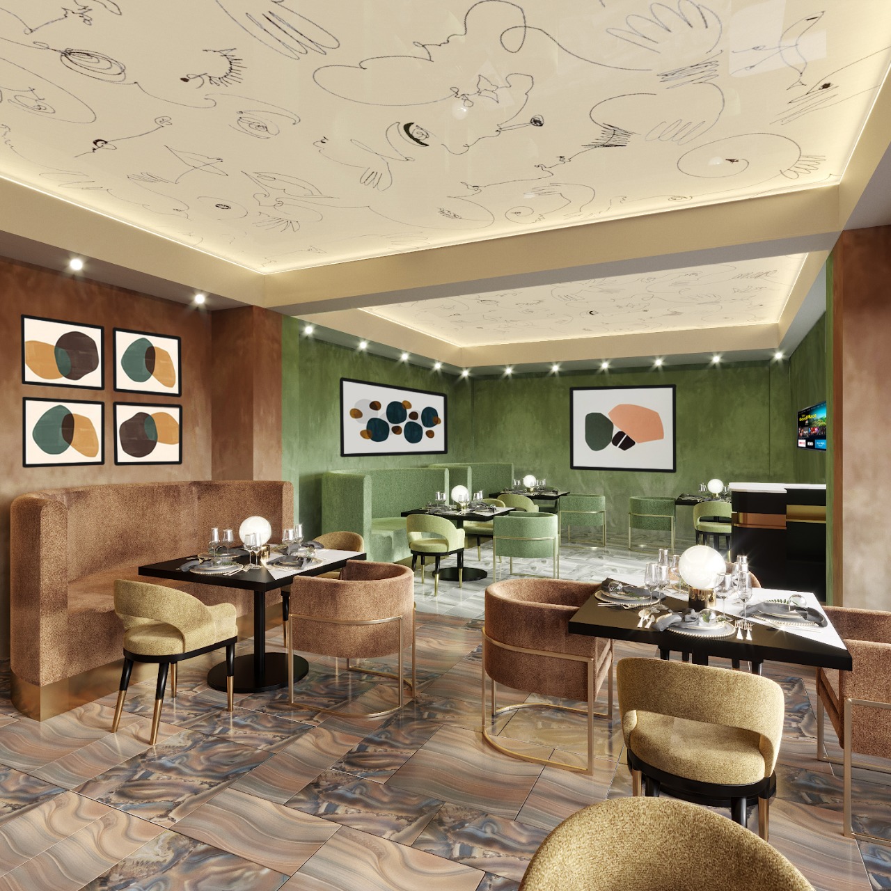 Основной зал «TEATRO» расположился под, впечатляющего объема, стеклянным куполом.
