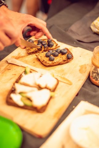 Певица Агнесе Раковска продемонстрировала, как приготовить блюдо на завтрак – такое, чтобы была сила для утра и немного даже для концерта вечером. Используя порционный хлеб с коноплей, яйца деревенских курочек свободного выгула, местные овощи и приправы. Радиоведущая и музыкант Марта Григале презентовала свою версию обеда в радио-студии: поджаренный овсяный Maiziņš со сливочным сыром и запеченным в духовке филе лосося с кусочками манго. Блогер Алина Келлер в свою очередь поделилась рецептом изысканного бутерброда, который можно взять с собой на работу, в школу или университет, в основе которого хлеб из греческого йогурта, креветки, авокадо, помидоры черри и сыр моцарелла.