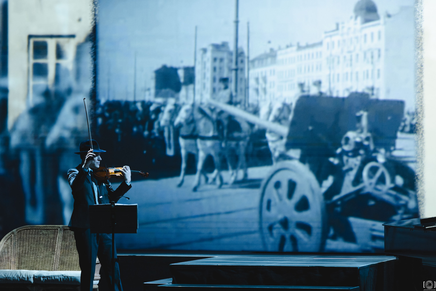 Сонора Вайце, скрипач Гидон Гринберг, аккордеонистка Инита Аболиня и пианист Марис Жагарс не только исполняют музыкальные партии, но и исполняют роли: Гринберг — возлюбленного Валентины Диму, Аболиня — Эльзу, борющуюся с ревностью, а Жагарс — русского солдата.