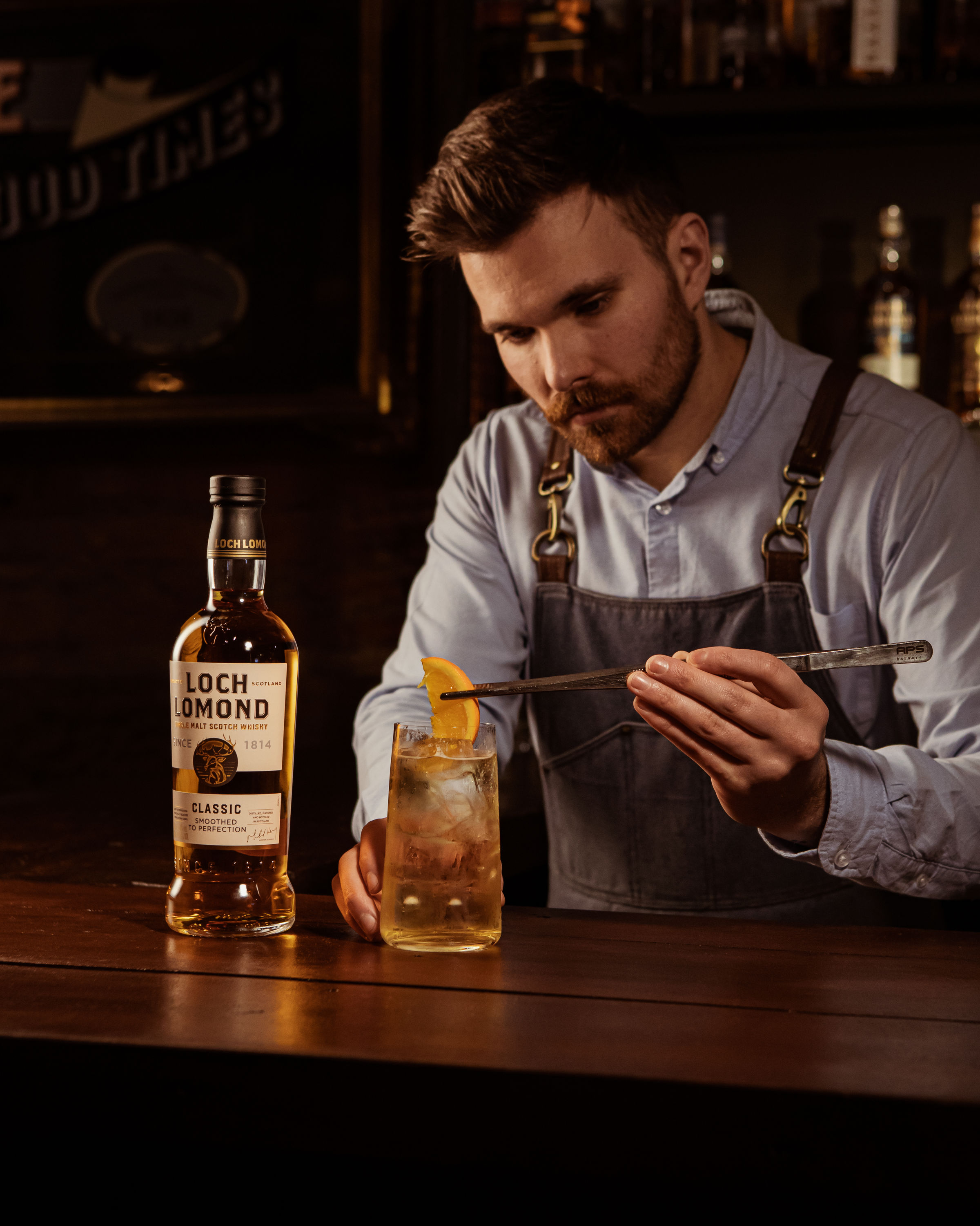 Классический коктейль с насыщенным ароматом и добавлением дымной ноты, идеально подчёркивающей богатый вкус Loch Lomond.
