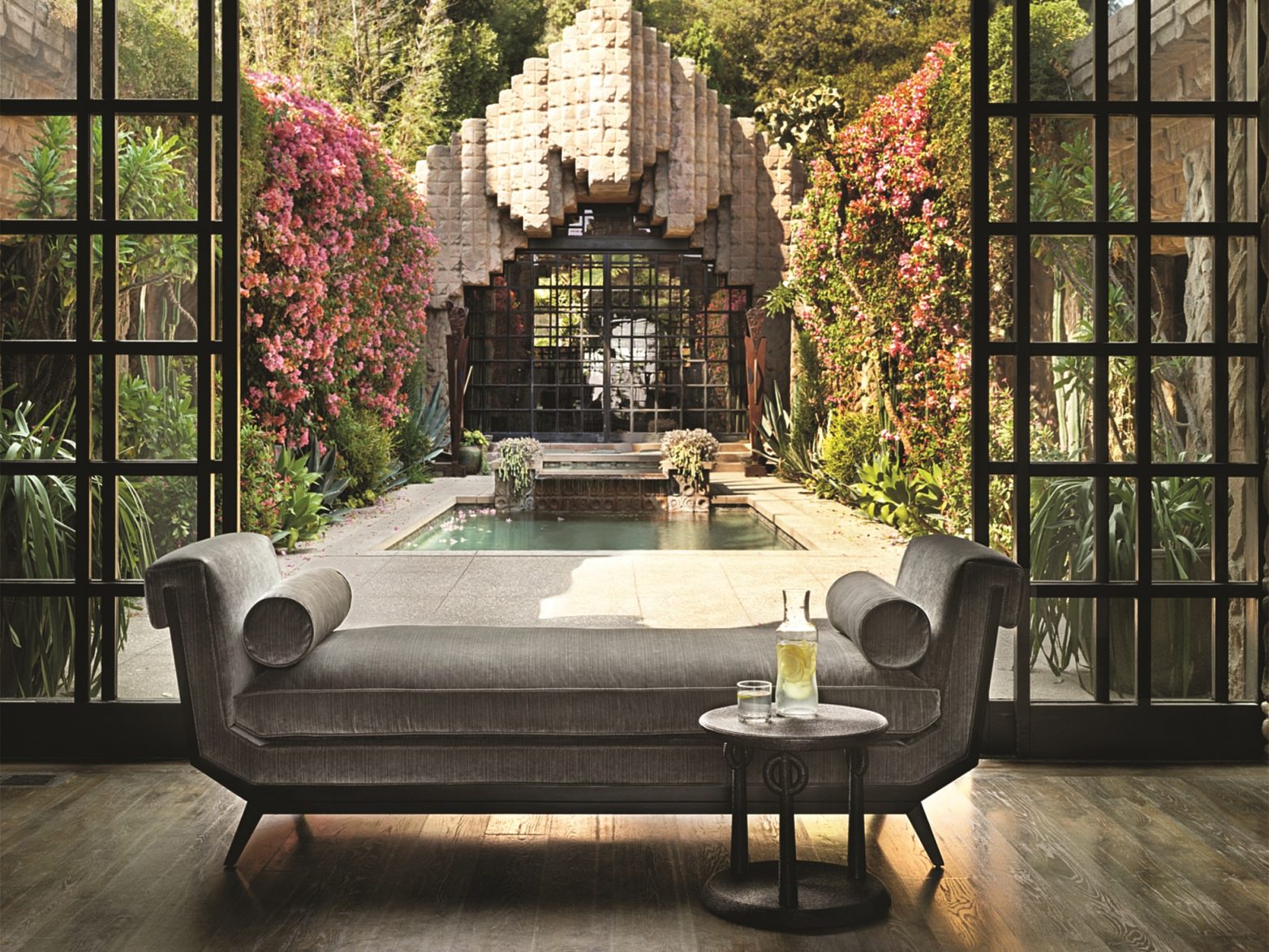 В одной из коллекций для компании Baker, с которой Кирар работает уже двенадцать лет в качестве приглашенного дизайнера, современные формы “инкрустированы” этническими мотивами. “Вдохновением для меня стала Мексика с ее древней культурой, высокоразвитыми ремеслами, живописью, архитектурой и богатой природой. Об этой стране я знаю не понаслышке. Это мой второй дом после США, — признается Лора. — На полуострове Юкатан мы с мужем нашли чудесное заброшенное поместье XVII века, которое приобрели и долго реставрировали. Работая над новой коллекцией для Baker, цветовую палитру я черпала в своем тропическом саду. Вообще в культуре и архитектуре мексиканцев превалируют яркие цвета: ярко-голубой, сочный зеленый, фуксия, лимонно-желтый. Удивительно разнообразная и чарующая природа располагает к такому мироощущению. Еще в местной культуре прослеживается смешение примитивизма с европейским классицизмом и испанскими мотивами. Эта особенность также повлияла на выбор форм. Для коллекции я выбрала необычный геометрический рисунок-орнамент, несколько типов деревянных отделок и более приглушенные, по сравнению с национальными, оттенки. Среди них — нежные зеленый и розовый”.