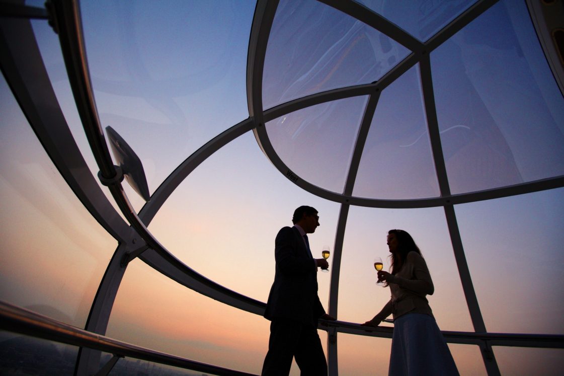 Лондон несомненно является одним из самых захватывающих мест на земле, а для многих путешественников и резидентов — также и самым романтичным городом в мире. Арендуйте всю кабинку Лондонского глаза, откройте бутылку шампанского Pommery Royal Brut и насладитесь видом на Лондон с высоты птичьего полета в течение 30-и минут. В кабине вас будет ожидать коробка элитных трюфелей Pink Champagne, а персональный официант исполнит все ваши желания. Идеальная атмосфера для того, чтобы насладиться друг другом, отметить годовщину или сделать предложение руки и сердца.