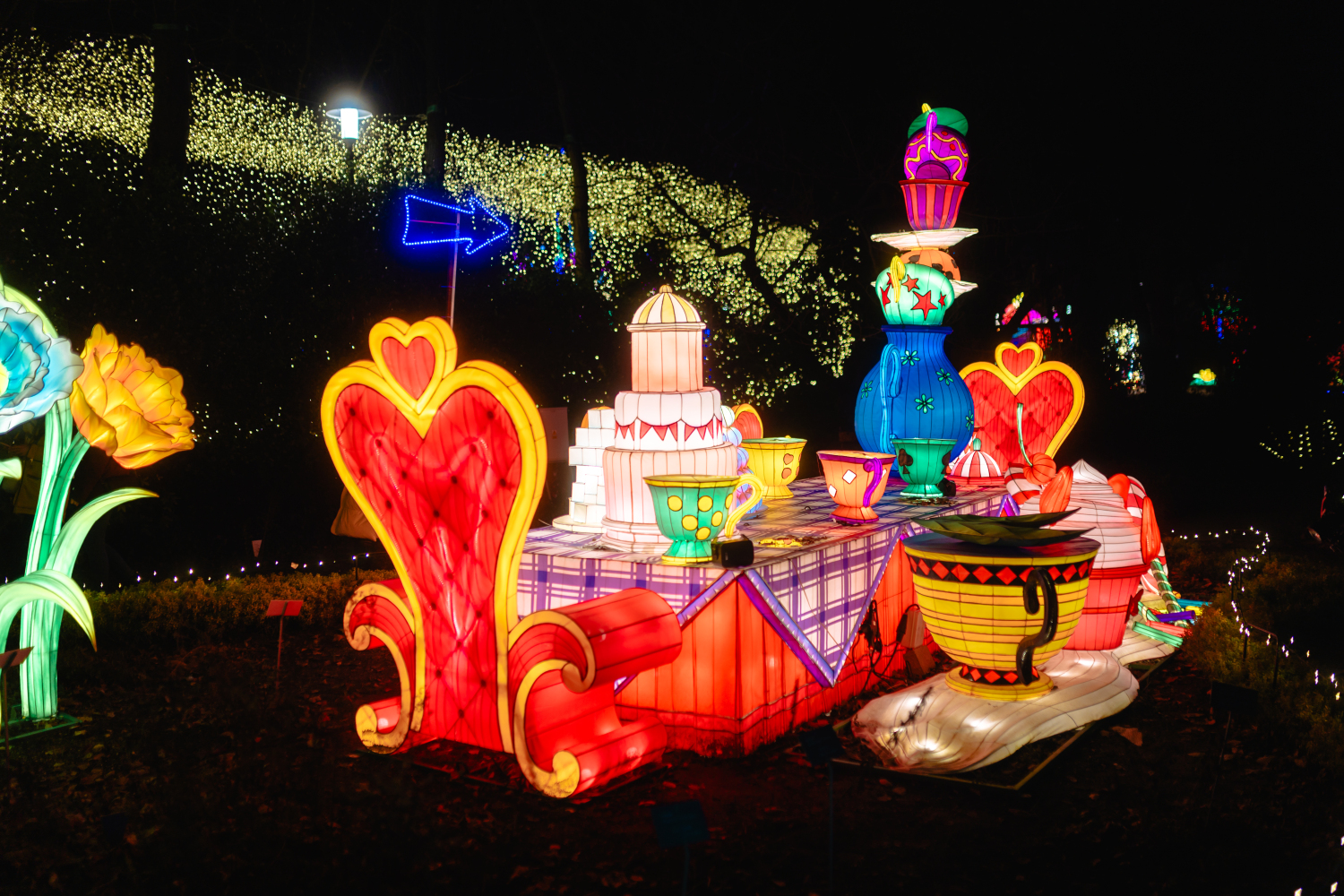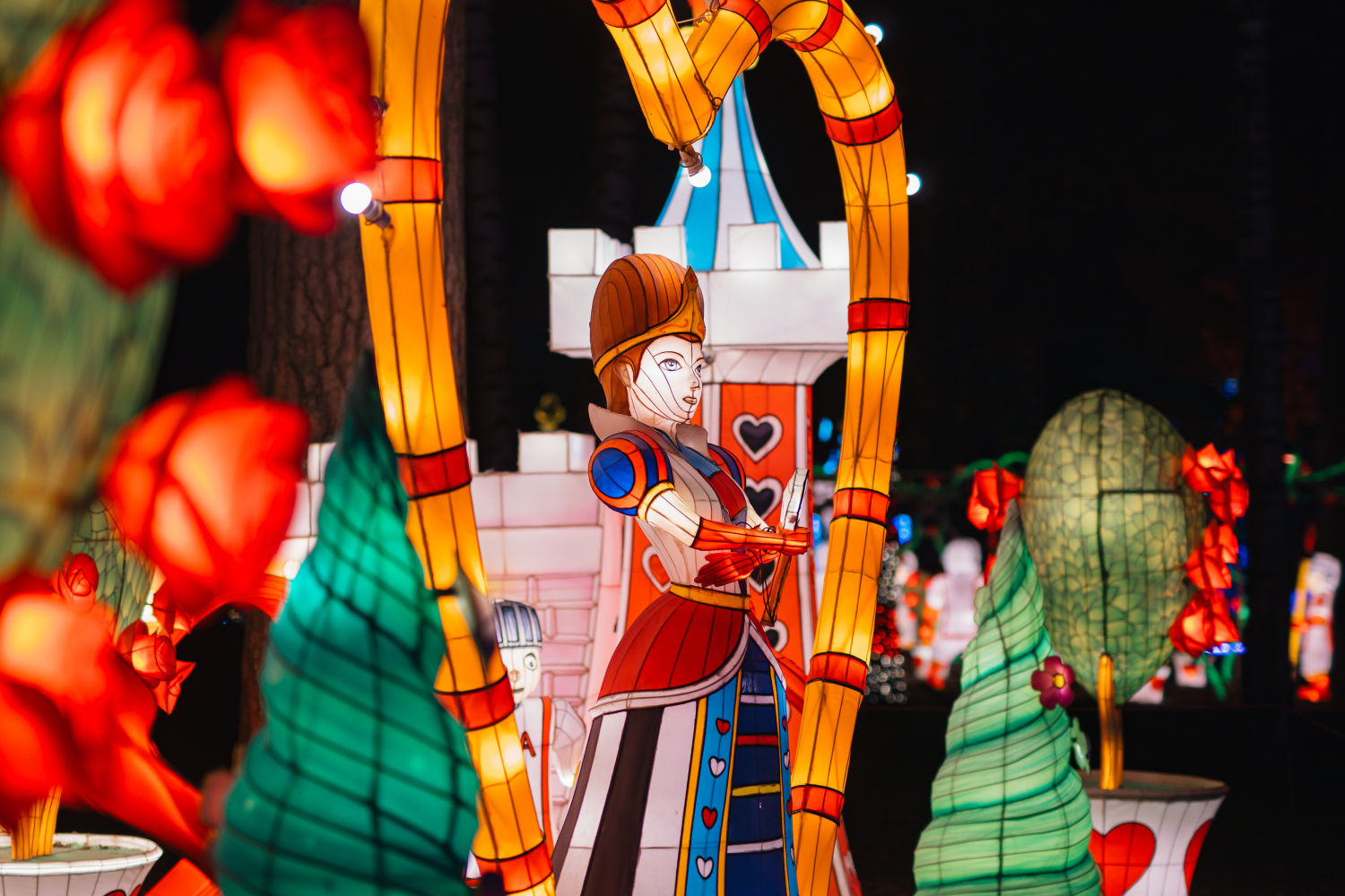- Любимые персонажи: встретитесь с Чеширским Котом, Безумным Шляпником, Королевой и другими героями, ожившими в невероятных световых инсталляциях.