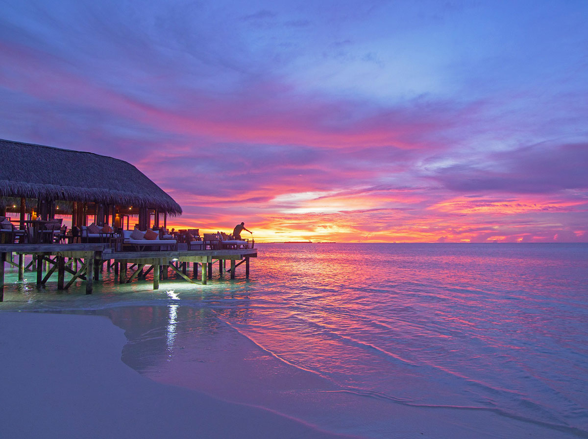 Раз в неделю в Muraka проходят «омарные вечеринки» – гости могут попробовать самые разные блюда, приготовленные из нежнейшего мяса в аккомпанементе с винами и игристым. И все это на фоне пламенеющих закатов и прямо над мерцающей водой, которую вечером отельеры затейливо подсвечивают.