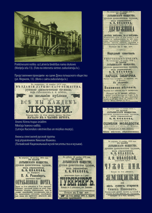 На протяжении долгого времени официальной датой основания русского театра в Риге считалось 2 октября 1883 года, когда началась антреприза А. А. Лаврова. Однако новые архивные документы, обнаруженные и проанализированные Эдуардом Цеховалом, убедительно доказывают: первый русский театр в Риге начал работу уже в 1873 году под руководством антрепренёра Н. И. Иванова.