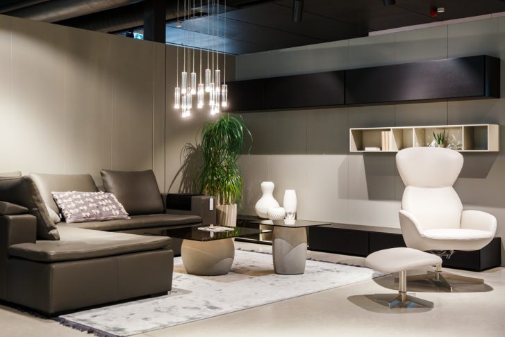 Важную часть внутреннего помещения представляет собой центральная лестница в новой части салона – она не только выполняет функциональные задачи, но и построена так, чтобы сразу открывался вид на экспозицию, размещенную на верхнем этаже, что побуждает посетителей подняться туда.