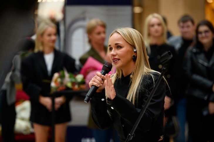 Вчера, 2 октября, в ТЦ моды и стиля жизни «Spice» состоялось открытие ретроспективной выставки сценических костюмов Айи Андреевой «Сцена немыслима без костюма», которая привлекла широкий круг поклонников таланта и друзей певицы. Среди гостей были музыкант и муж Айи Янис Айшпурс, музыкант группы «Prāta Vētra» Марис Михельсонс с женой Лаурой Михельсоне, телеведущая Яна Дулевска, музыкант Агнесе Раковска, актрисы Мария Берзиня и Анете Красовска, мультихудожник Кашерс и многие другие.