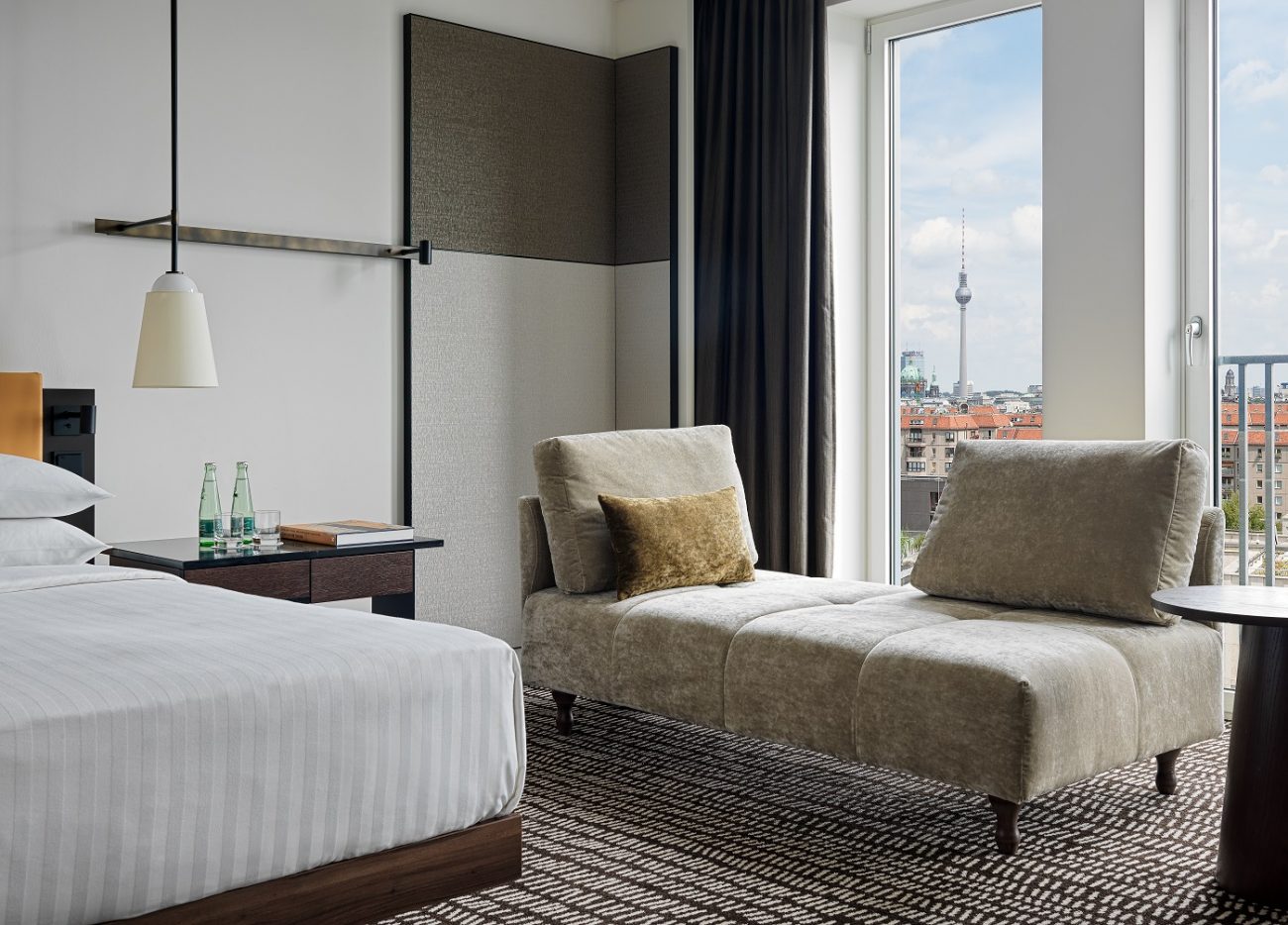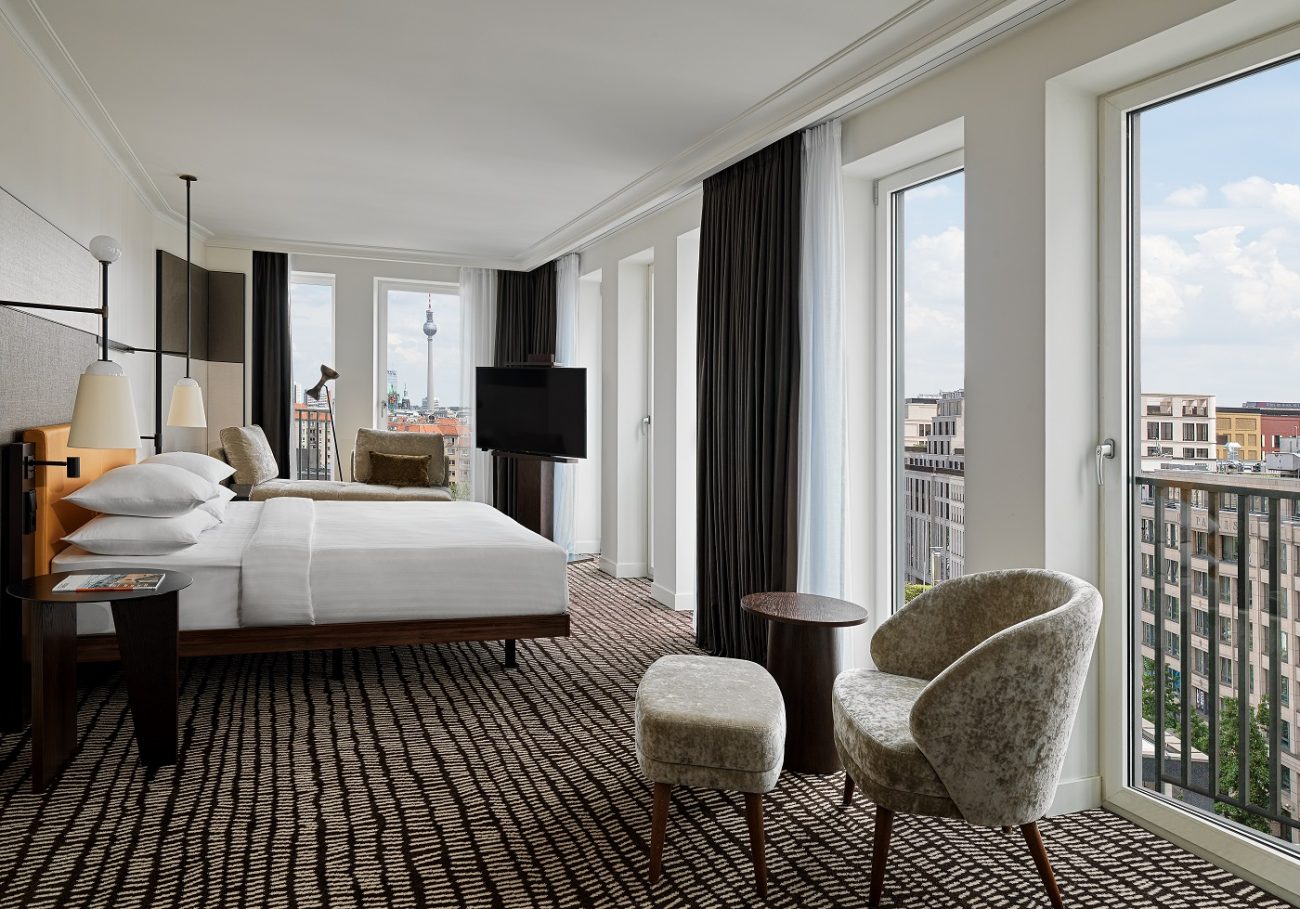 Неравнодушным к архитектуре путешественникам придется по вкусу проживание в недавно обновленном отеле Berlin Marriott. Новый дизайн был вдохновлен стилем Баухаус, возникшем в Берлине в 1930-х годах. Расположенный в самом сердце города, рядом с Потсдамской площадью отель предлагает своим гостям насладиться элегантной и притягательной атмосферой архитектурного стиля Баухаус в современном прочтении. Гармоничное переплетение традиций, модернизма и будущего, характерное для стиля Баухаус, отражается в выборе материалов, тканей и используемых цветов, а также продуманных до мелочей высокотехнологичных элементов, используемых в номерах. Из окон номеров открывается потрясающий вид на знаменитые крыши Берлина – от Бранденбургских ворот и площади Жандарменмаркт до Берлинской телебашни.