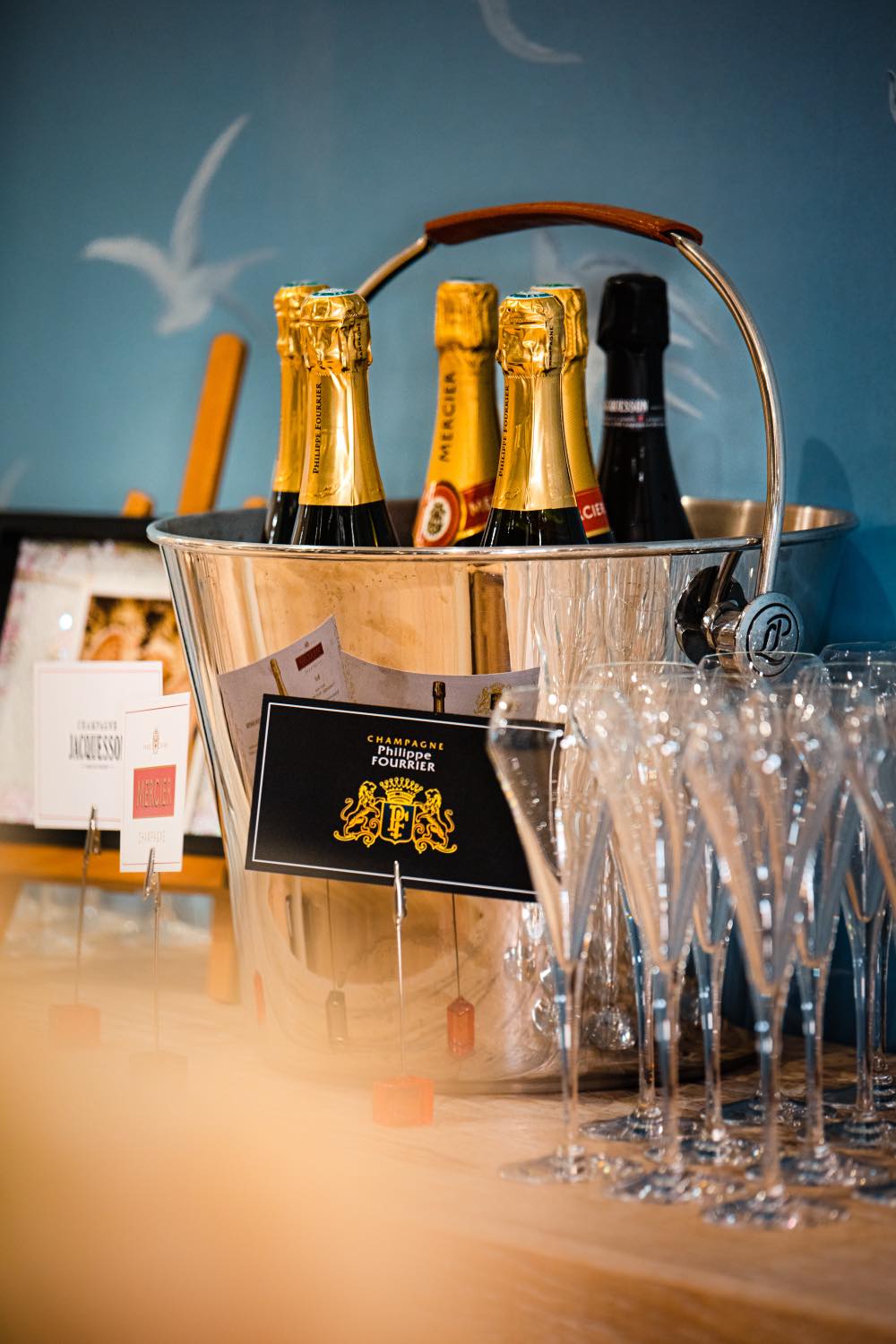 Однако, Зарине удалось найти такое вино и привезти его в Ригу специально для того, чтобы вы его смогли отведать. Это уникальная возможность продегустировать редчайшее шампанское из сорта Pinot Blanc, созданное Домом Philippe Fourrier, а также брюты от легендарных домов Mercier и Jacquesson и составить об этих винах собственное мнение. К шампанскому вам подадут закуски:  волнованы с красной икрой, корзиночки с сыром , рулеты с курицей, багеты, фуагра