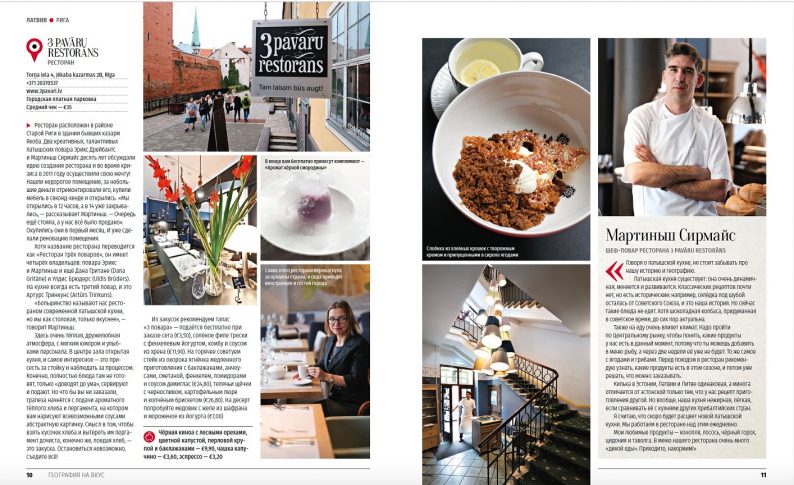 Новый гид по лучшим гастрономическим местам Латвии уже четвертый в серии «География на вкус». Автор проекта — журналист и телеведущая Ника Ганич (Россия), официальный фотограф проекта Яков Титов (Россия). Гид вышел при поддержке Департамента туризма Латвийского агентства инвестиций и развития, Рижского бюро по развитию туризма Live Rīga, Юрмальского туристического инфоцентра Visit Jūrmala.