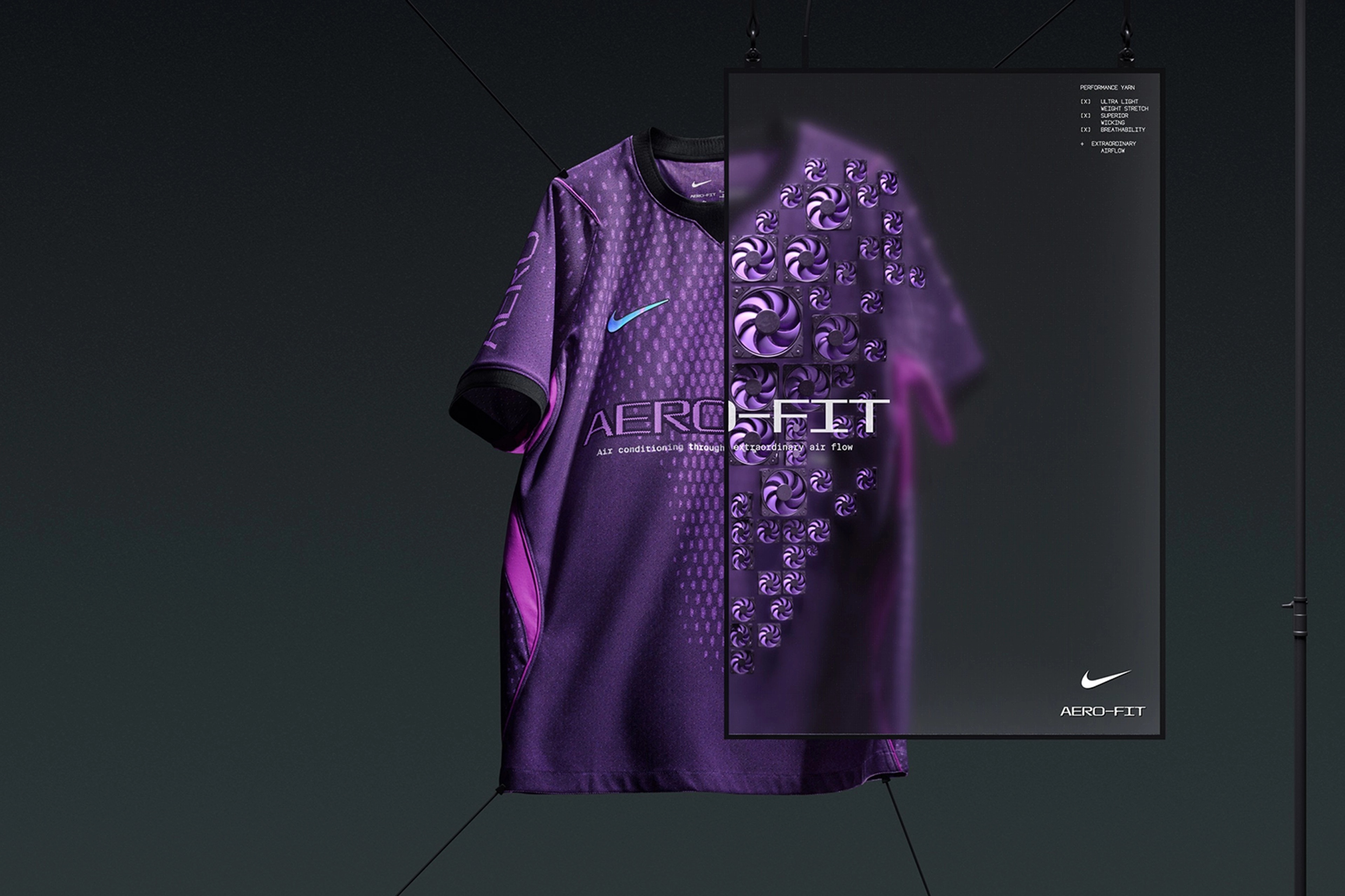 В сегменте одежды представлен концепт терморегулирующей ткани AeroFit, способной реагировать на изменение температуры тела и внешней среды, охлаждая или согревая спортсмена без необходимости смены экипировки.