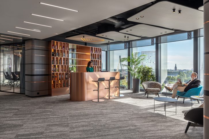Сотрудники глобальной компании по производству и распространению алкогольных напитков Amber Beverage Group (ABG) переехали в новое офисное помещение в одном из самых высоких зданий в Балтии — Z-Towers, откуда открывается потрясающий вид на Старый город, Рижский порт и Агенскалнс.
