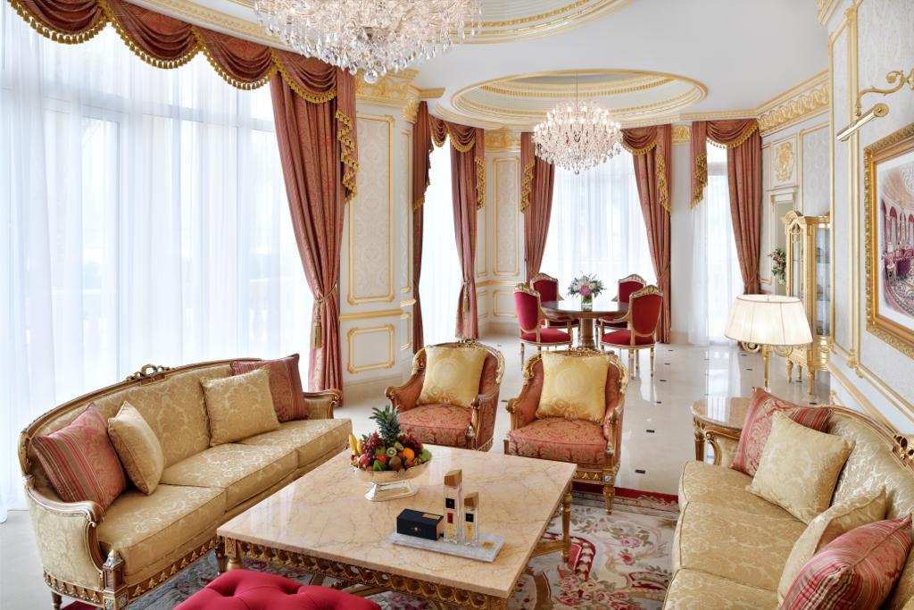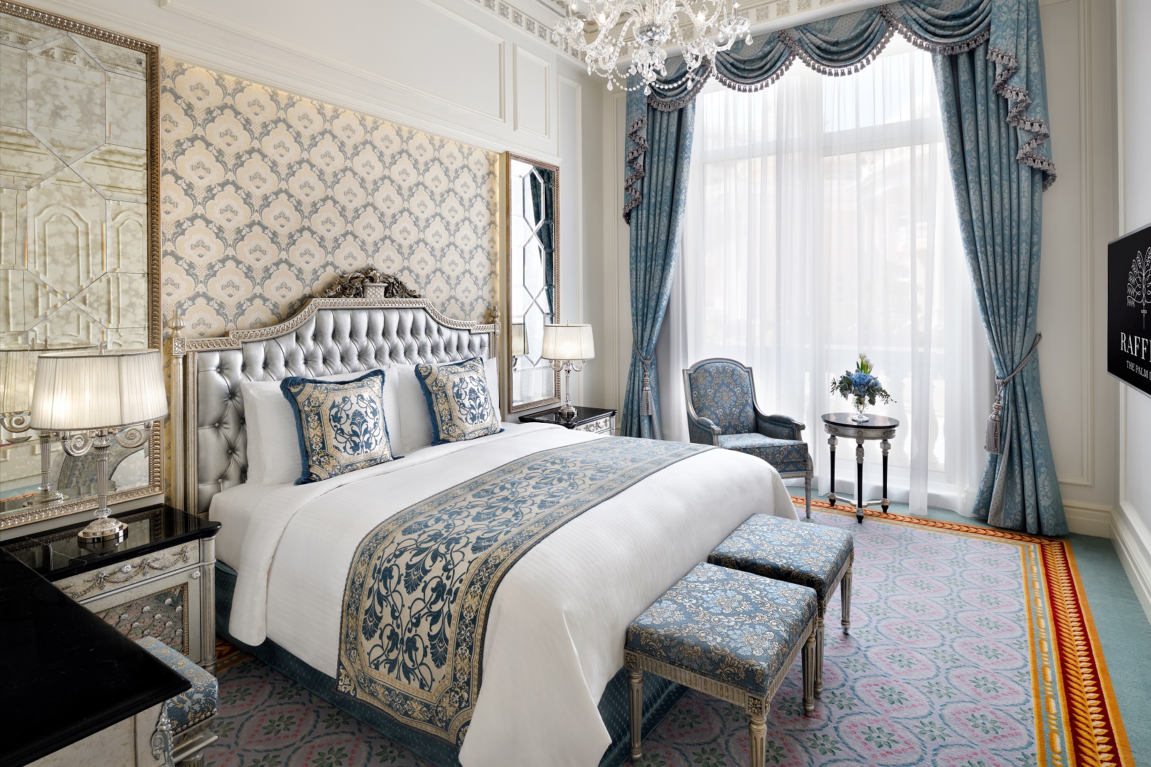 Отель класса люкс, открытие которого состоялось 1 октября 2021 года, занимает премиальное положение на острове Пальма Джумейра. В отеле 389 декорированных в классическом стиле номеров, включая люксы и виллы. К услугам гостей – великолепные виды на море, приватный песчаный пляж, прекрасный крытый бассейн, новая концепция пляжного клуба и несколько ресторанов международной кухни. Круглосуточный сервис батлеров, кондитерская Raffles, клубный лаунж Raffles – отель предлагает эти и другие услуги, традиционные для отелей Raffles. Восстановить силы можно в спа-центре Cinq Mondes, включающем 23 комнаты для процедур, две комнаты для пар, хамамы, скраб-комнаты, полностью оснащенный тренажерный зал и студии йоги.