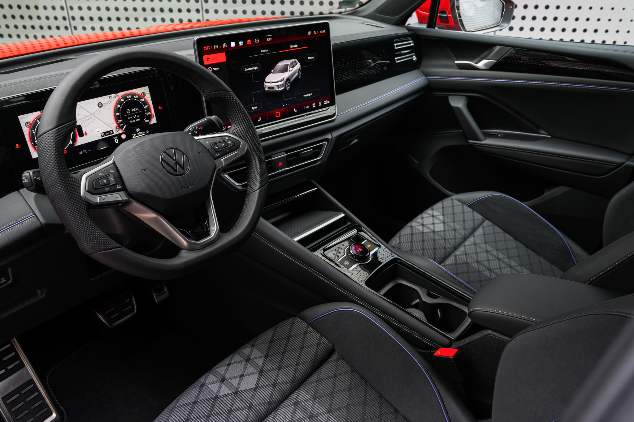 Цифровой дисплей Digital Cockpit, базирующийся на матрице информационно-развлекательной системы MIB4 четвертого поколения, обеспечивает обмен информацией с водителем и позволяет использовать различные цифровые сервисы и приложения. Дисплей размером до 15 дюймов предоставляет такие функции, как навигация, аудиосистема и управление климатом. Кроме того, головной дисплей дополнен расширенной реальностью, улучшающей навигацию, проецируя вид с камеры на лобовое стекло и помогающей водителю своевременно менять полосу движения, а также визуализируя текущую скорость и динамическое распознавание дорожных знаков. Новый поворотный переключатель с маленьким экраном, расположенный в центральной консоли, позволяет регулировать режимы вождения, громкость радио или цвет салонного освещения. Кроме того, многие функции автомобиля, такие как подогрев руля или кондиционирование воздуха, можно легко настроить с помощью нового голосового помощника IDA, основанного на платформе искусственного интеллекта ChatGPT.