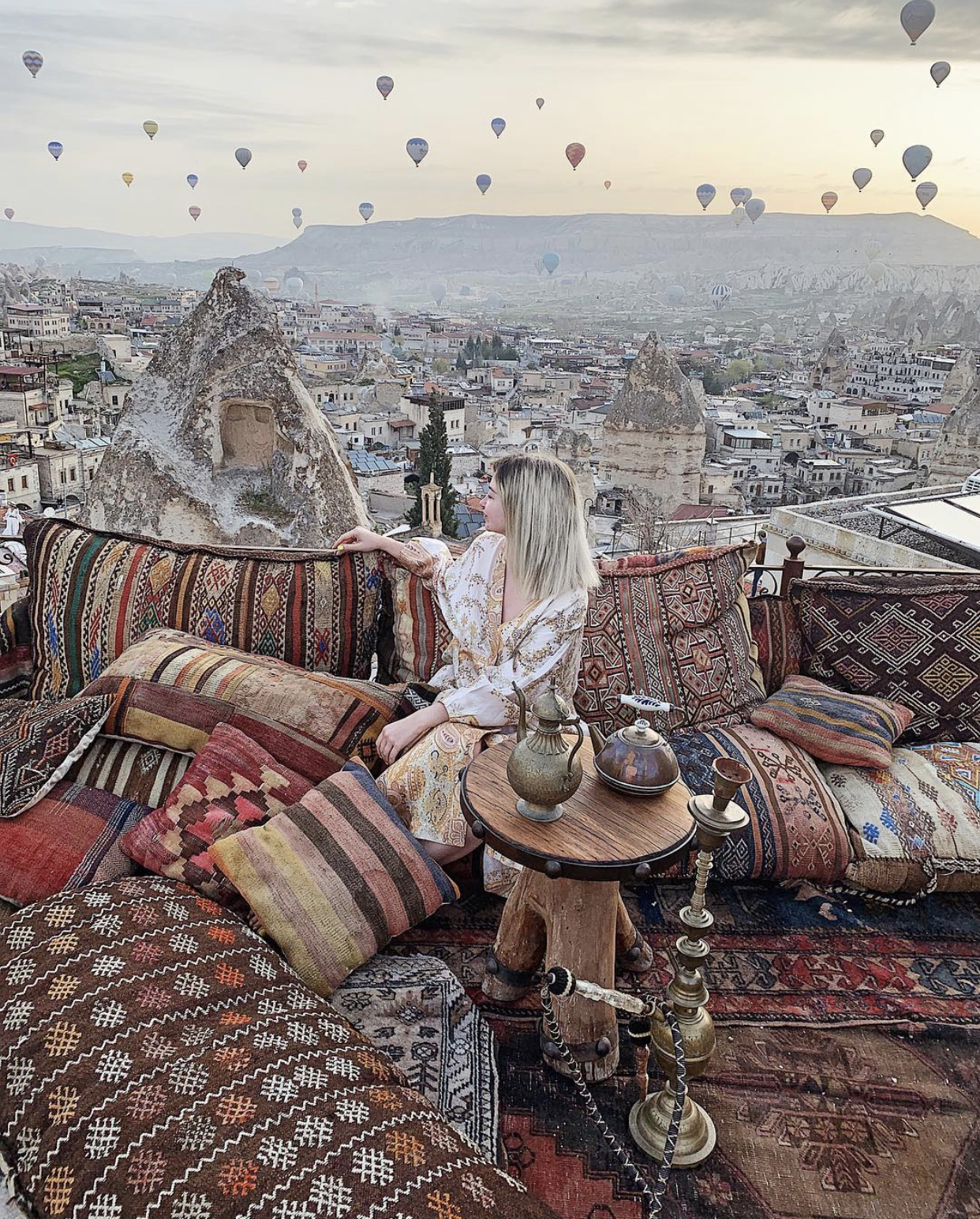 Наверняка, вы хоть раз обращали внимание на красочные фото в Инстаграм, сделанные на фоне воздушных шаров и колоритных турецких подушек. Отель Koza Cave расположен в городе Герем предлагает именно такую возможность. Но это опасно: однажды увидев невероятный розово-карамельный рассвет с одной из самых красивых террас Каппадокии и сотни воздушных шаров, парящих в небе, вам точно не захочется отсюда уезжать.