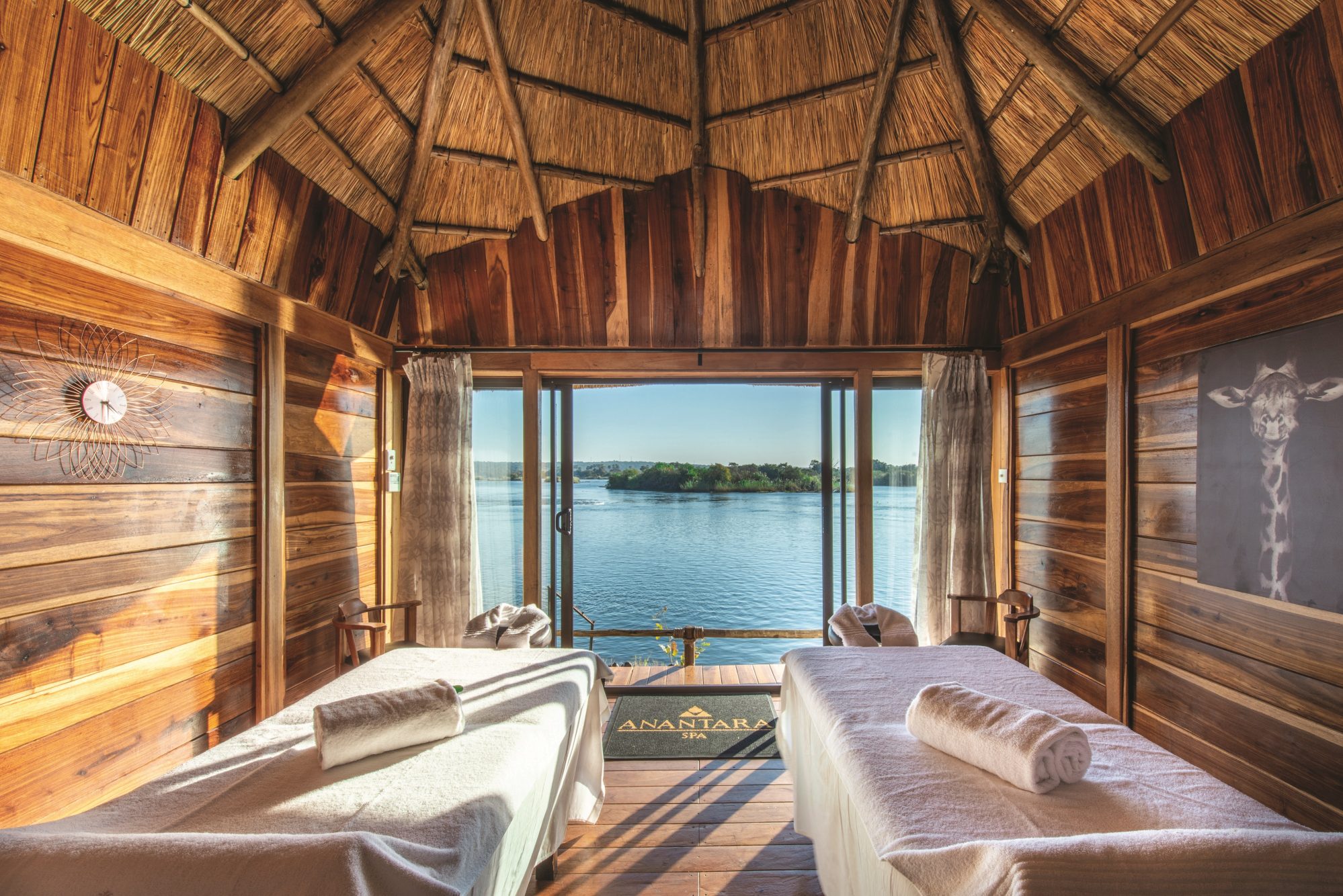 Спа-центр отеля Anantara Spa находится на берегу реки Замбези. Идеальным дополнением к расслабляющей процедуре служит местная природа: шум воды, пение птиц и звуки дикой природы, насладиться которой можно в кабанах, расположенных на побережье.