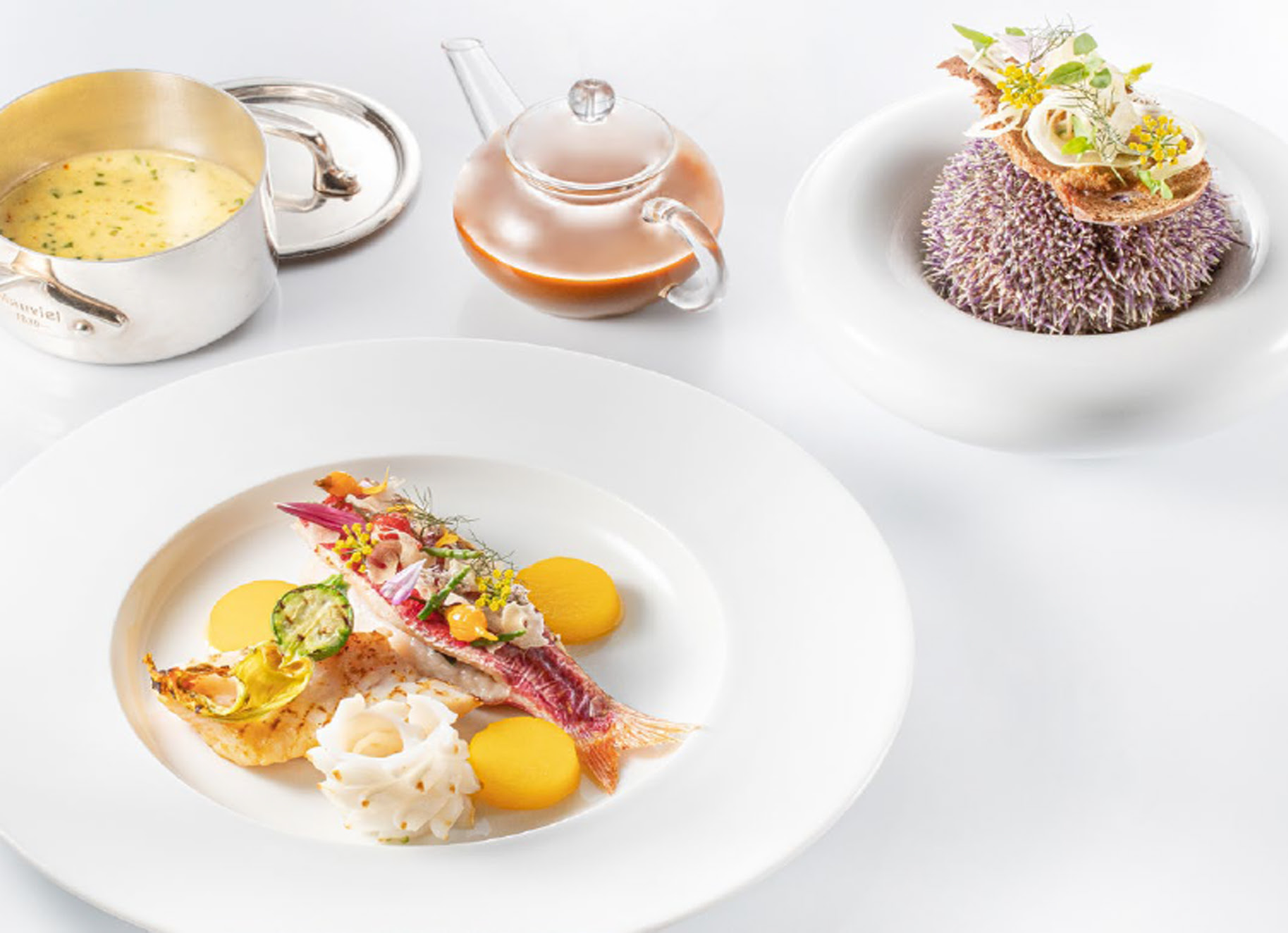 Шеф-повар Кристоф Шмитт работал в нескольких «звездных» ресторанах и имеет много профессиональных наград и титулов. В 2012 году он выиграл Международную премию Титингера, является лауреатом премии Trophée Espoir de l’année журнала Le Chef в 2011 году, а 4 года назад стал одним из финалистов Meilleur Ouvrier de France. Он использует уникальные современные кулинарные техники, а аутентичный, иногда контрастный вкус и яркий аромат его блюд не оставят равнодушным даже самого изысканного гурмана. В чем секрет шеф-повара? В тщательно отобранных свежих продуктах. И это не чрезмерный перфекционизм, а уважение к продуктам, производителю и окружающей среде. Вот лишь несколько примеров блюд нового шефа, вдохновленного местным «провансальским» терруаром: хек под соусом «гренобль» в сопровождении свежего урожая с огорода Terre Blanche – хрустящей цветной капусты. Или изысканное и в то же время простое блюдо – конфи из бедра цесарки с обжаренной брюссельской капустой – одно из фирменных блюд Кристофа Шмитта.