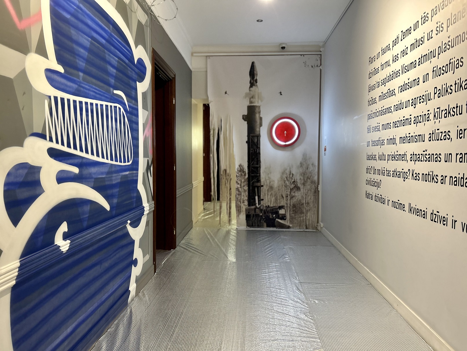 Переступив порог Города, вы на секунду замираете на серебристо — белом полу узкого коридора, пытаясь рассмотреть светящийся холодным неоном красный круг и обычный, казалось бы, ключ от входной двери, парящий в центре этого объекта. Ключ, поворот которого даёт команду старта смертельному орудию SS-20. Фотография этой ракеты во всю высоту помещения нависает над зрителем пугающим моментом запуска и заставляет нас поднять глаза выше, к краю бетонного забора. Эту стену советских времен, обнесенную колючей проволокой, узнает каждый житель Латвии, переживший те времена, а вот граффити, автором которых является не только в нашей стране, но и далеко за ее пределами, анонимный художник KIWIE, придает ему живописность и актуальность. Жанр его творчества — уличное граффити как свидетельство времени и событий, как прямое, откровенное и громкое художественное высказывание, мимо которого невозможно пройти, опустив глаза, невозможно остаться равнодушным, невозможно ответить так же анонимно — себе, про себя, про своё отношение к этому миру. KIWIE слышат все, его искусство разбудить эмоции прохожих узнаваемо и, вероятно, сохранится посланием и нашим детям, побудит искать ответы на вопрос: что каждый из нас создаёт, чтобы заполнить ноосферу Земли волей к жизни, желанием развиваться и процветать.