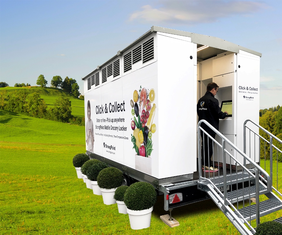 Мобильный шкафчик для продовольственных товаров, предлагаемый в странах Балтии “StrongPoint”, удобно перемещается с места на место и не требует особого разрешения на установку. Мобильному продуктомату требуется лишь подключение электросети и интернету. Предприятие розничной торговли может испытать продуктомат в разных местах и проверить, где эта услуга пользуется наибольшим спросом.