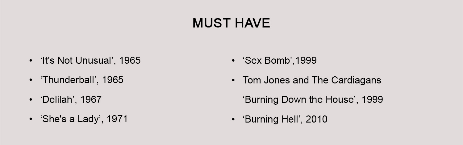 В 1971 Джонс выстреливает с самой знаменитой композицией – «She’s a Lady» – написанной Полом Анкой. В 1990-е Том Джонс продолжает выпускать пар на сцене, обжигая публику харизмой. В 1996 снимается у Бертона в «Марс атакует!». В 1998 он получает рыцарский орден Британской империи, а уже через год вместе с немецким диджеем Мауссом Т обрушивает на публику свою самую оглушающую бомбу — «Sex Bomb».