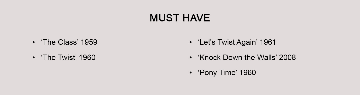 Затем последовала череда песен в стиле твист: «Twistin’ U.S.A.», «Mister Twister», «Teach Me to Twist». Что-то из этого просто обязано было выстрелить – мак и случилось. В 1961 вышел самый великий твист в истории, «Let’s Twist Again». Можно даже не включать — он сам начинает играть в голове, как только видишь название! Это подтверждают и 166 миллионов просмотров на YouTube. В 1964 году он женится на датской модели и Мисс Мира 1962 года Катарине Лоддерс. Свадьбу опишет журнал JET: «около тысячи жителей ждали снаружи и горячо приветствовали «Короля Твиста» и бывшую «Мисс Мира», когда они покинули церковь и уехали вдаль на серебристом Rolls-Royce Чабби» (речь о Silver Cloud III).