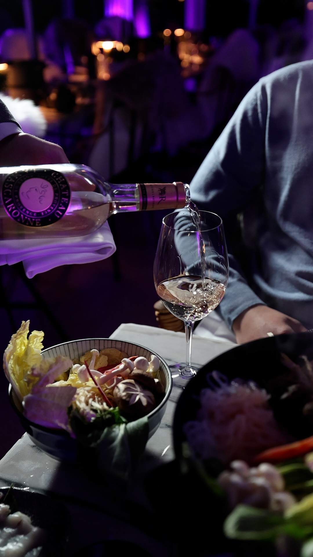 Для дегустации можно выбрать один из 3-х видов бульона: мясной (говядина, копченая свинина или маринованная курица), рыбный (тигровые креветки, кальмары и лосось) или вегетарианский (тофу, батат и овощные гёдза). Мясо, тофу и рыба с морепродуктами добавляются в блюдо по индивидуальным предпочтениям гостей. Дополнительные порции овощей и бульона предоставляются по желанию гостей бесплатно в течение дегустации.