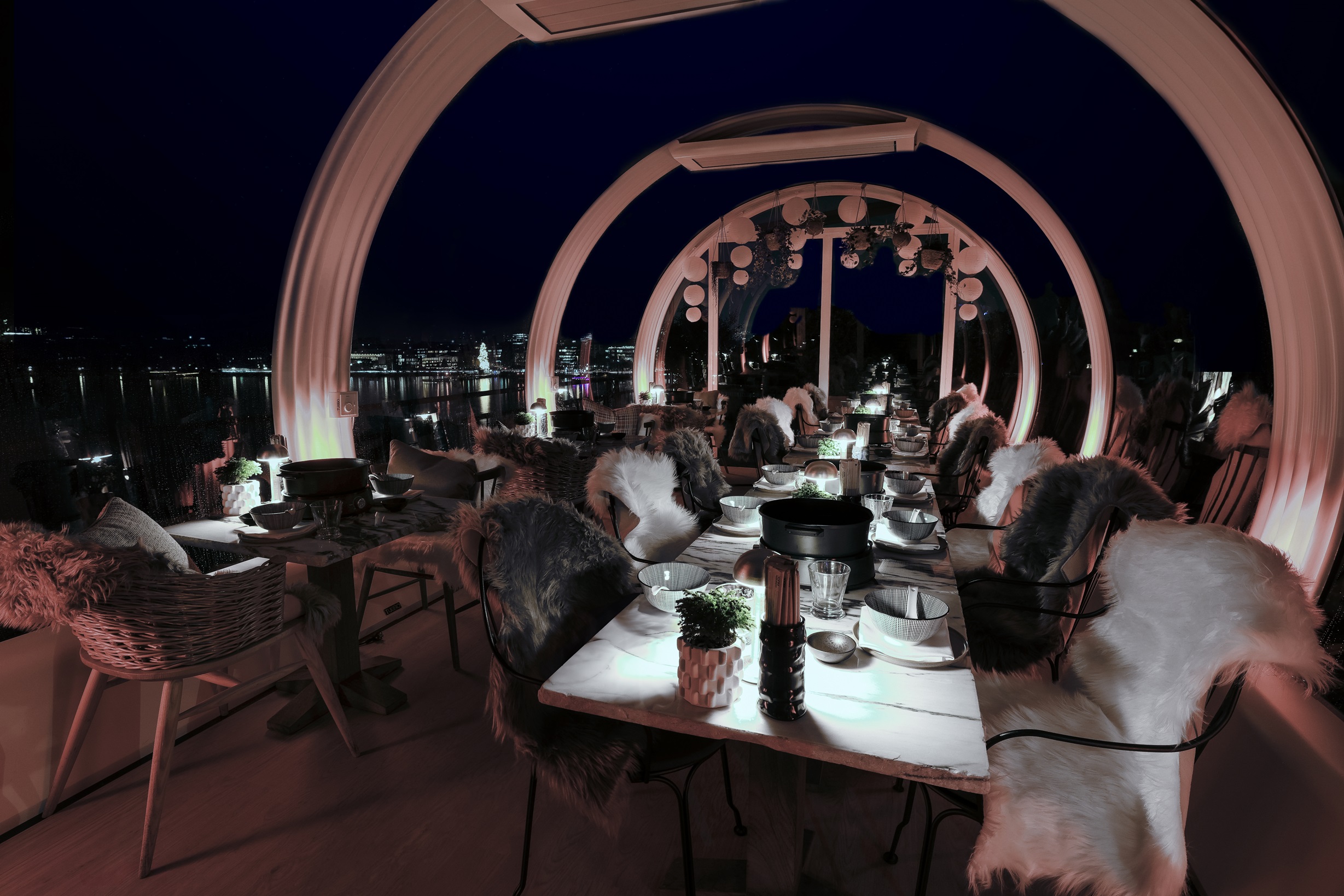 Подогреваемая терраса с надувным bubble-куполом и с видом на Цюрих