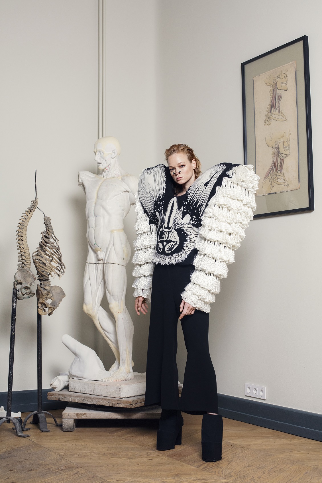 В основе коллекций лежат исторические свидетельства, воспоминания о прошлом, наследие поколений и кумиры детства. Несколько провокационных тем, таких как феминизм, мутации, границы между живыми и мертвыми, а также стереотипы красоты, были рассмотрены через призму моды. Что касается форм, одежда отличается массивными и абстрактными силуэтами, асимметричным кроем, мелкими деталями и плавными линиями, которые эффектно сочетаются с яркими принтами. В этот вечер у зрителей будет возможность наблюдать разнообразие стилей, фактур и материалов.