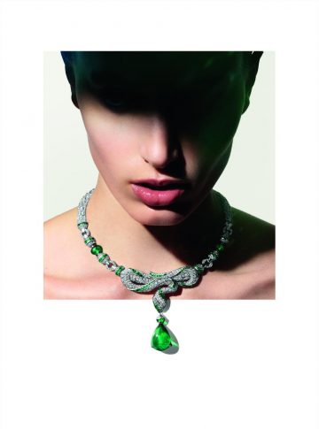 Изумрудное колье Magnus Emerald совмещает в себе классицизм и современность. С внутренней стороны — всегда актуальная бриллиантовая дорожка. С внешней — смелый архитектурный дизайн, который идеально сочетается с плавным силуэтом сотуара. Всё это подчеркивает природное совершенство изумруда 241,06 карат, одного из самых выдающихся из когда-либо добытых в Колумбии. Идея ювелиров — воспеть пронзительную зелень многогранного драгоценного камня, а также его неоспоримый блеск и прозрачность. Сотуар излучает непринужденную элегантность и раскованную утонченность 1970-ых. Он воплощает стремление Дома Bvlgari раздвинуть границы возможного, — ведь это самый крупный в его истории изумруд, — а также прославить дары природы и человеческую способность фантазировать и творить без оглядки.