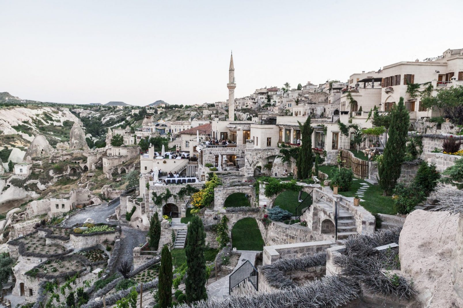 Отель находится рядом с крепостью Учхисар в Каппадокии (входит в список всемирного наследия ЮНЕСКО). Он был построен на месте пещерного монастыря V века н.э., в помещении которого позже был оборудован караван-сарай для путешественников, отправлявшихся по Великому шелковому пути, а еще позже – мельница для производства льняного масла. В здании отеля расположен музей с археологическими артефактами. Впрочем, весь комплекс строений Argos in Cappadocia можно считать музеем: были восстановлены подземные лабиринты, соединяющие бывшие кельи, здание церкви, в котором сейчас проводят концерты и мероприятия, и винный погреб – сейчас там находится коллекция из 22000 бутылок вина. На территории отеля растут виноградники, а также есть собственный огород, который снабжает свежайшими травами и овощами кухню ресторана Seki. Каждый из 51 номеров отеля не похож на другие и сочетает современный дизайн с историей и традициями Каппадокии. Для многих гостей это также одно из самых романтических мест на свете и идеальная площадка для свадьбы или медового месяца.