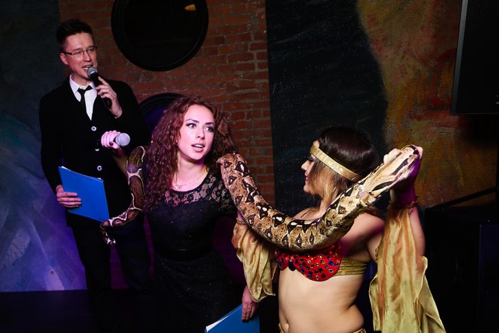 На сцене происходили сказочные номера от партнёра презентации «Московского театра Иллюзий». Изюминкой представления стала огромная змея, которая напугала ведущую вечера Евгению Короткевич.