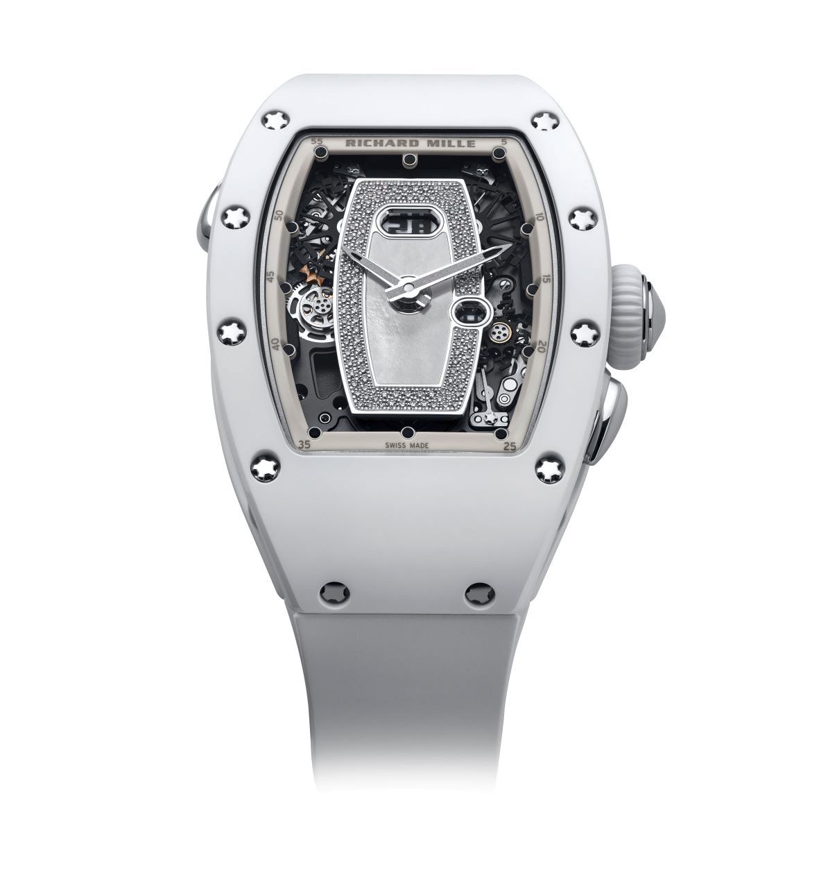 Элегантная модель RM 037 Automatic из белой керамики с характерными для бренда архитектурой, функциональностью и высочайшей конструктивной сложностью достойно продолжает линию женских часов Richard Mille.