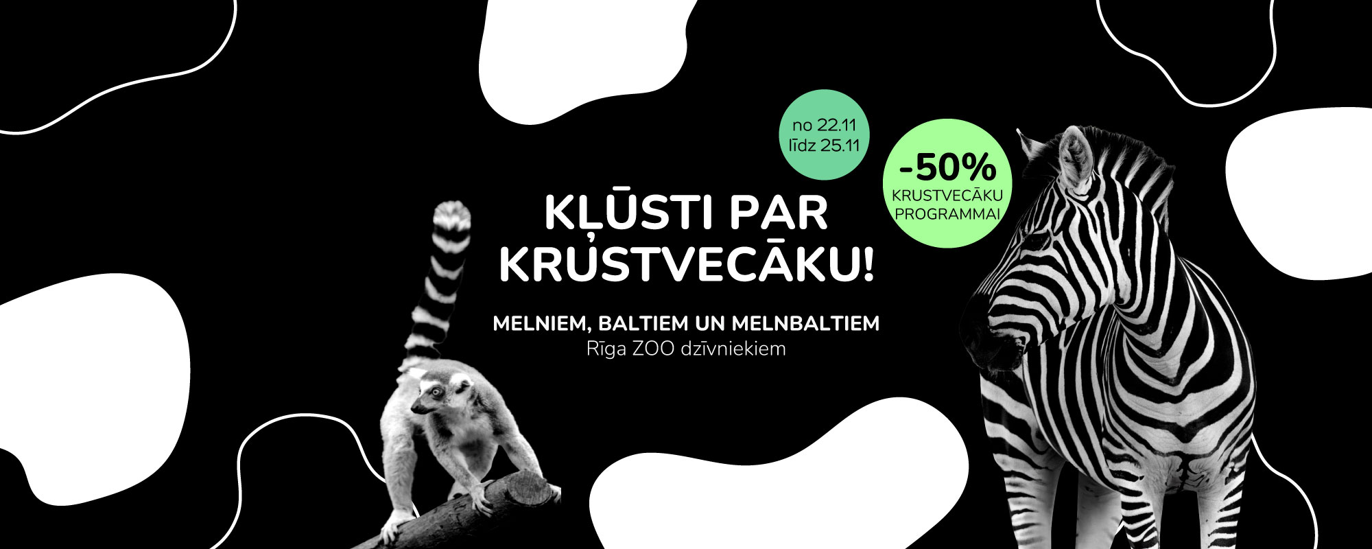 С 22 по 25 ноября Национальный зоопарк Риги приглашает на необычную «Черно-белую пятницу». Посетители зоопарка смогут стать крестными родителей для животных, тем самым поддержав их содержание и способствуя сохранению редких видов. Присоединившись к программе крестных родителей, участники получают годовой абонемент, позволяющий навещать своих «крестников» каждый день.