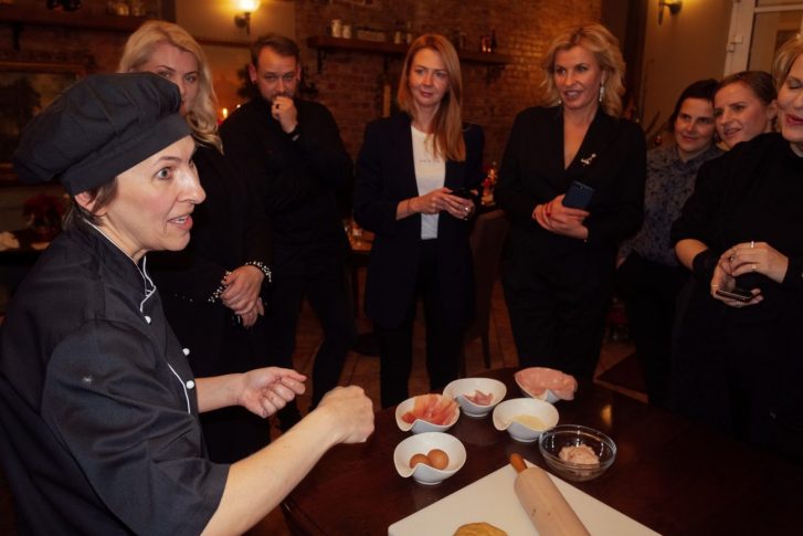 В итальянском семейном ресторане “Sale & Pepe” собрались известные в Латвии люди, гурманы и блогеры, чтобы вместе с итальянскими поварами Рафаэлем и Ритой Терлицци приготовить традиционное праздничное болонское угощение тортеллини в рождественских настроениях.