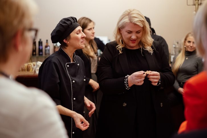 На мастер-класс в итальянском ресторане вечером 12 ноября собрались более 20 популярных в Латвии личностей, в том числе актриса Агнесе Зелтиня, стилист и ведущая телепередач Индра Салцевича, ча также гурманы и жизнелюбы, чтобы познакомиться с традициями североитальянского города Болоньи и отметить вступление в пору ожидания Рождества.